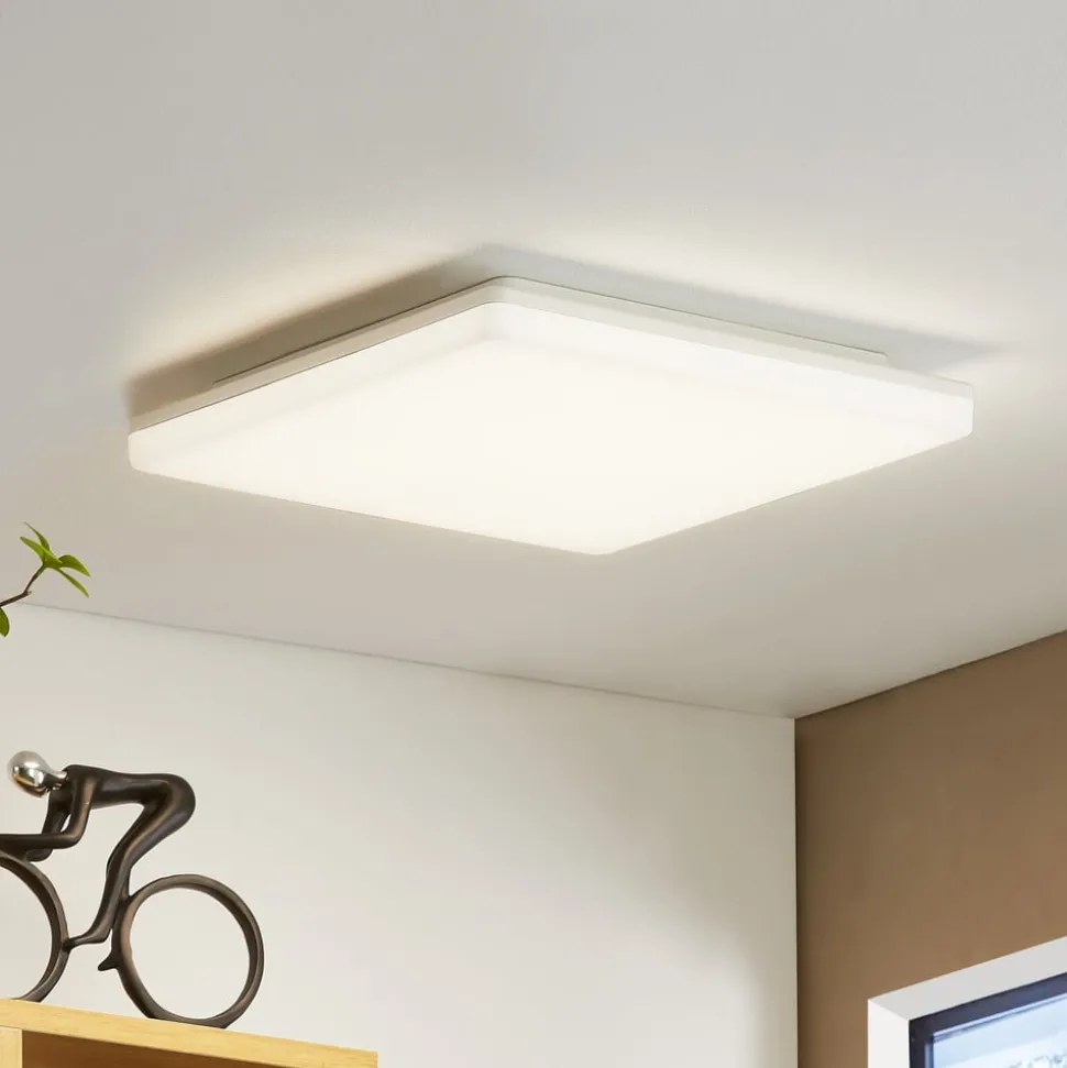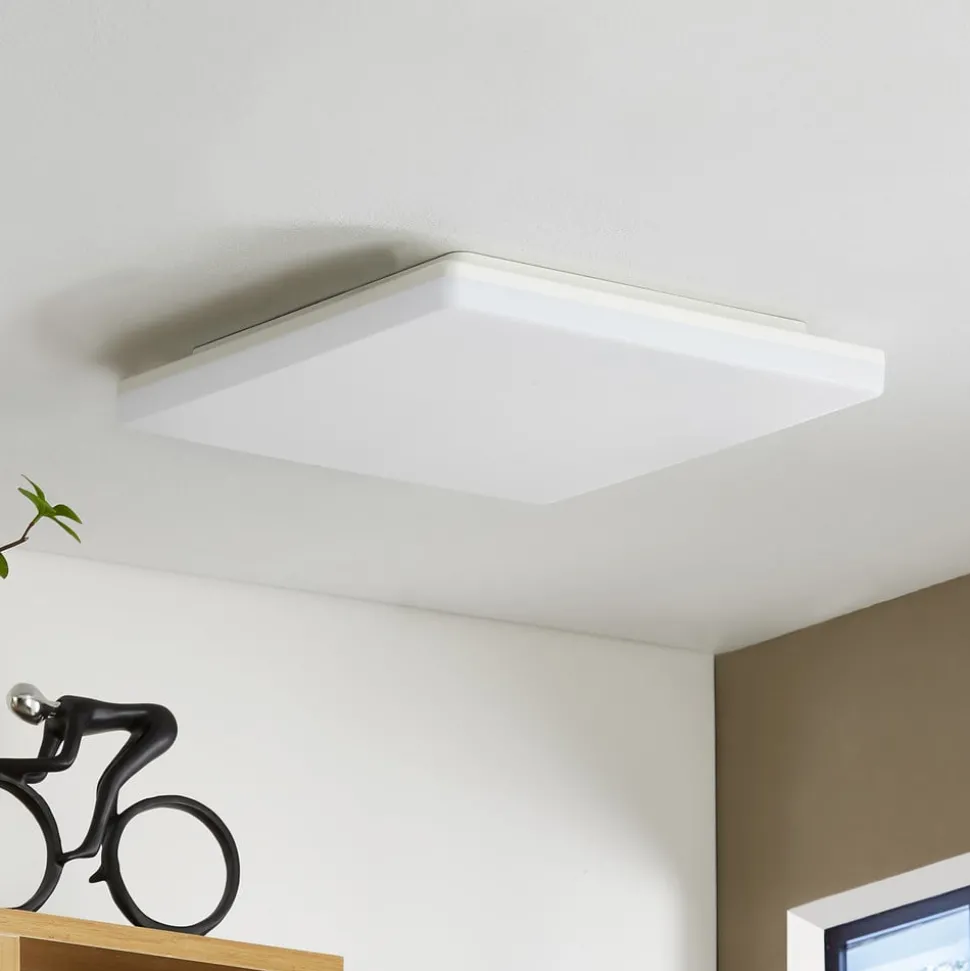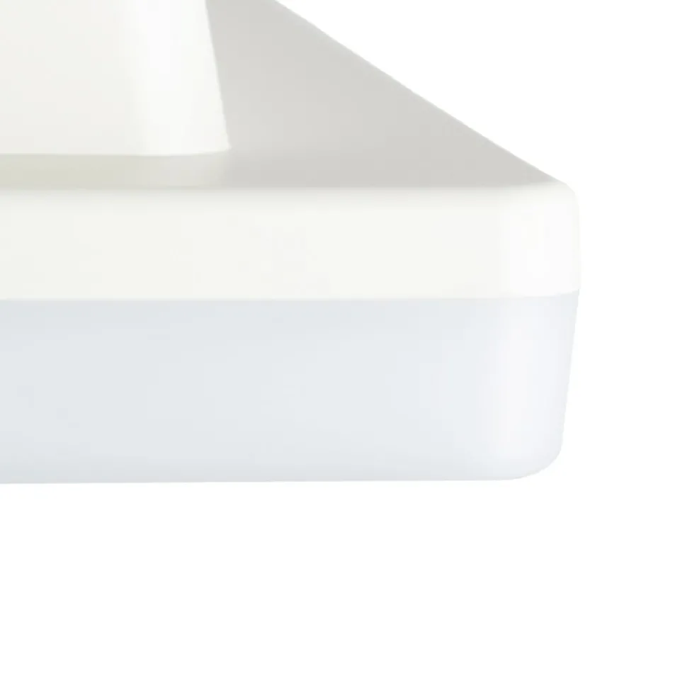 CCT-kompatibel Artin LED-taklampe med IP65-beskyttelse Artin LED-taklampe er en moderne lyskilde i plast med en kantet form. Den hvite lampeskjermen kan enkelt integreres i mange fargekonsepter, slik at den kan passe inn i mange ulike miljøer. I tillegg fungerer dekselet som en diffusor, slik at lyset stråler homogent og blendingsfritt ut i omgivelsene. Armaturen har to DIP-brytere. Disse kan brukes til å justere lysfargen i flere trinn: 3 000 K, 4 000 K og 5 700 K, og til å endre effekten fra 24 W til 17 W. Dette gjør det mulig å bruke armaturen i ulike situasjoner. Dette gjør at armaturen kan brukes i ulike situasjoner og samtidig oppfylle alle ønsker. Takket være den gode IP65-klassifiseringen kan den også brukes i fuktige rom, for eksempel på badet. Artin LED-takarmatur er en stilig belysningsløsning, ikke bare for ditt eget hjem, men også for den kommersielle sektoren. Tekniske data: – CCT-funksjon via DIP-bryter: 3 000 K / 4 000 K / 5 700 K – Dobbel wattfunksjon via DIP-bryter: 24 W / 17 W – Kapslingsklasse IP65 – Utstrålingsvinkel 120° – Slagfasthet IK08