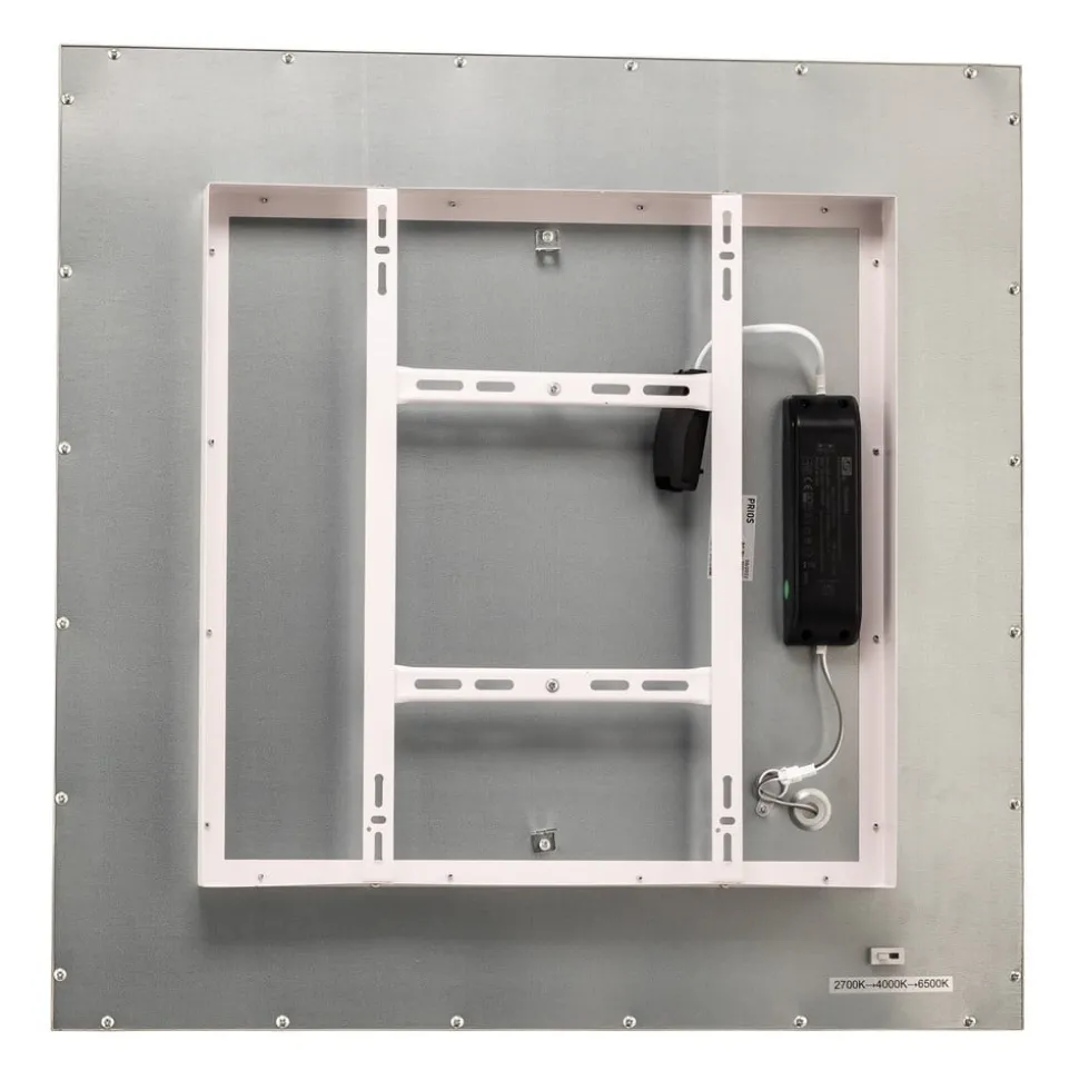 Klassisk Dinvoris LED-panel med kvadratisk grunnform og et sidemål på 62 cm, forinnstillbar lysfarge Dinvoris har en hvit lysende overflate og en ramme i sølv, noe som gir et diskret og tidløst utseende. LED-panelet kan derfor brukes på en rekke ulike måter, både kommersielt og privat. En DIP-bryter på baksiden gjør det også mulig å velge lysfarge før installasjon, med tre ulike fargetemperaturer tilgjengelig, fra behagelig varmhvit til nøytral universalhvit, som er ideell for arbeid, til en kjøligere dagslys-hvitt. I tillegg gjør en eksternt installert dimmer det mulig å justere lysstyrken nøyaktig etter behov.