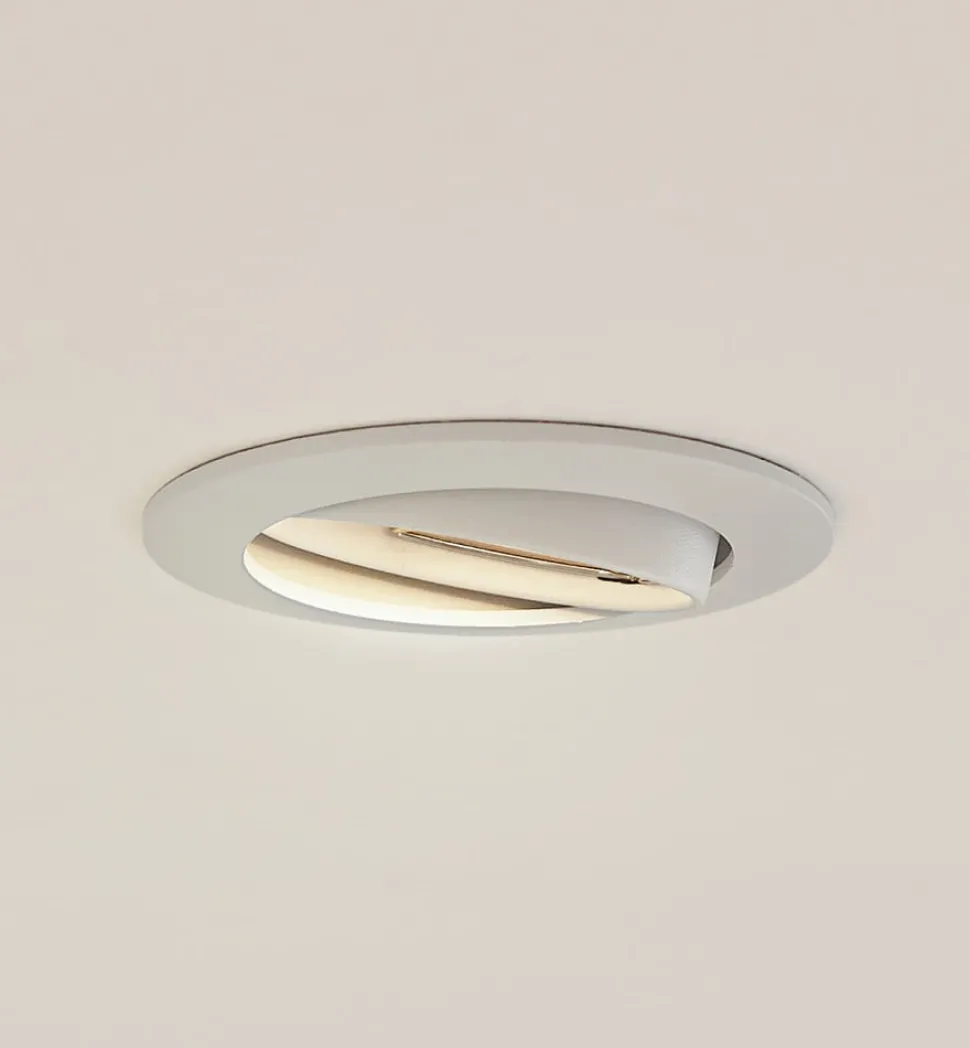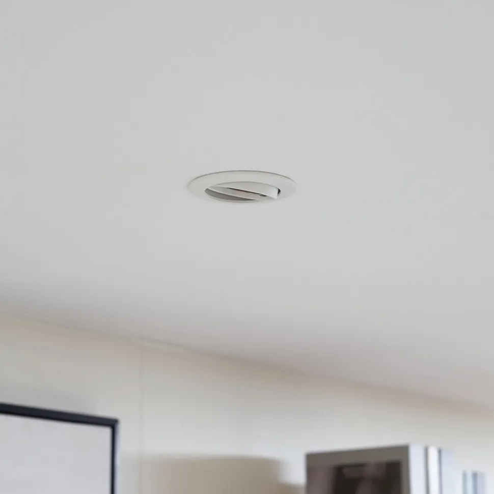 Prios innfelt taklampe Fibur, hvit, aluminium, Ø 8,2 cm
