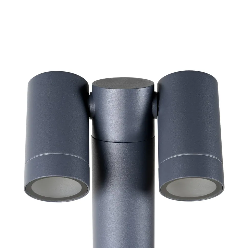 Tulimar spot med jordspyd med to bevegelige spots Tulimar spot med jordspyd er ekstremt praktisk til utendørs bruk. Med sine to spots, som kan flyttes uavhengig av hverandre, kan den lyse opp inngangspartiet eller hagestien på en optimal måte. Takket være kapslingsgraden IP65 kan denne spotlighten brukes pålitelig utendørs over lang tid. Den mørkegrå overflaten smelter godt inn i ulike omgivelser uten å skille seg ut.