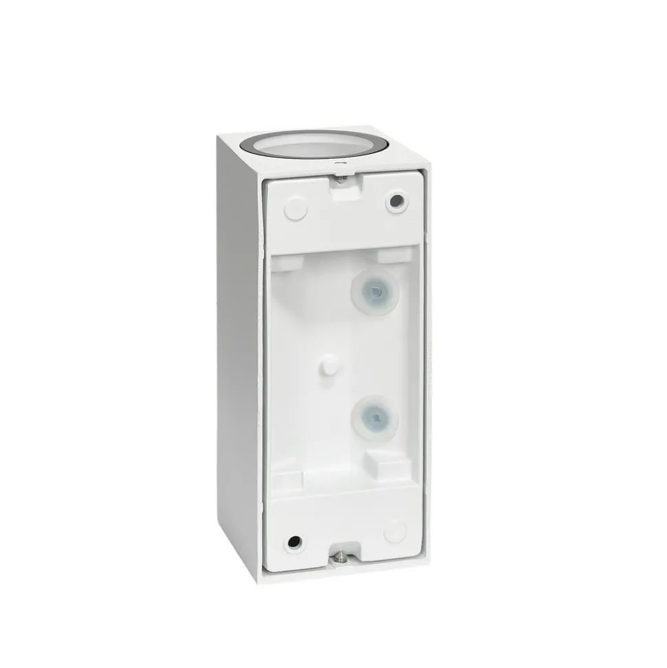 Enkel utendørs vegglampe Tetje i aluminium i hvit farge – i et praktisk sett med 4 stk Tetje imponerer med sin minimalistiske design i aluminium. Lampen har en kubisk form og er holdt i en hvit farge som avrunder designet på en fin måte. Den er værbestandig, noe som kjennetegnes av kapslingsgraden IP65, og er derfor ideell som ytterdørsbelysning. Utendørs vegglampen Tetje kan enkelt kombineres med andre lamper i serien for å skape et harmonisk helhetsinntrykk. Lampen kan monteres med GU10-pærer og leveres i et praktisk sett med 4 stk.