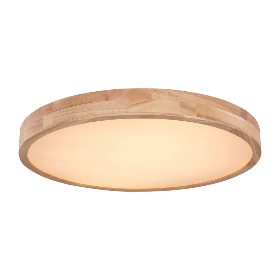 Rainer taklampe med regulerbar lysfarge (CCT) Rainer taklampe har en ramme i treeffekt og er et blikkfang i alle rom. Avhengig av stemningen kan fargetemperaturen enkelt justeres fra lysfargen varmhvit til universalhvit og dagslys ved hjelp av en fjernkontroll eller en ekstern veggbryter. Takket være sin nøytrale sjarm kan denne lampen brukes universelt i ulike rom i huset. Fjernkontroll medfølger (2 x AAA-batterier medfølger) – Lysfargene kan stilles inn – Minnefunksjon medfølger – Timer medfølger – Justerbart nattlys