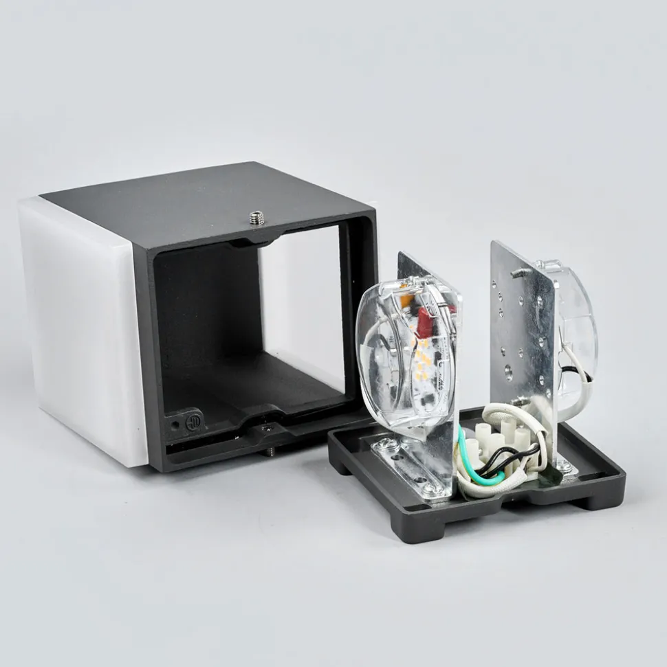 Den utendørs vegglampen Sarah er en kombinasjon av lampekropp av støpt aluminium med to deksler av kunststoff over lyspærene. Lyset er jevnt og oppfattes behagelig. LED-teknologien gjør denne utendørs vegglampen til en svært energisparende belysning.