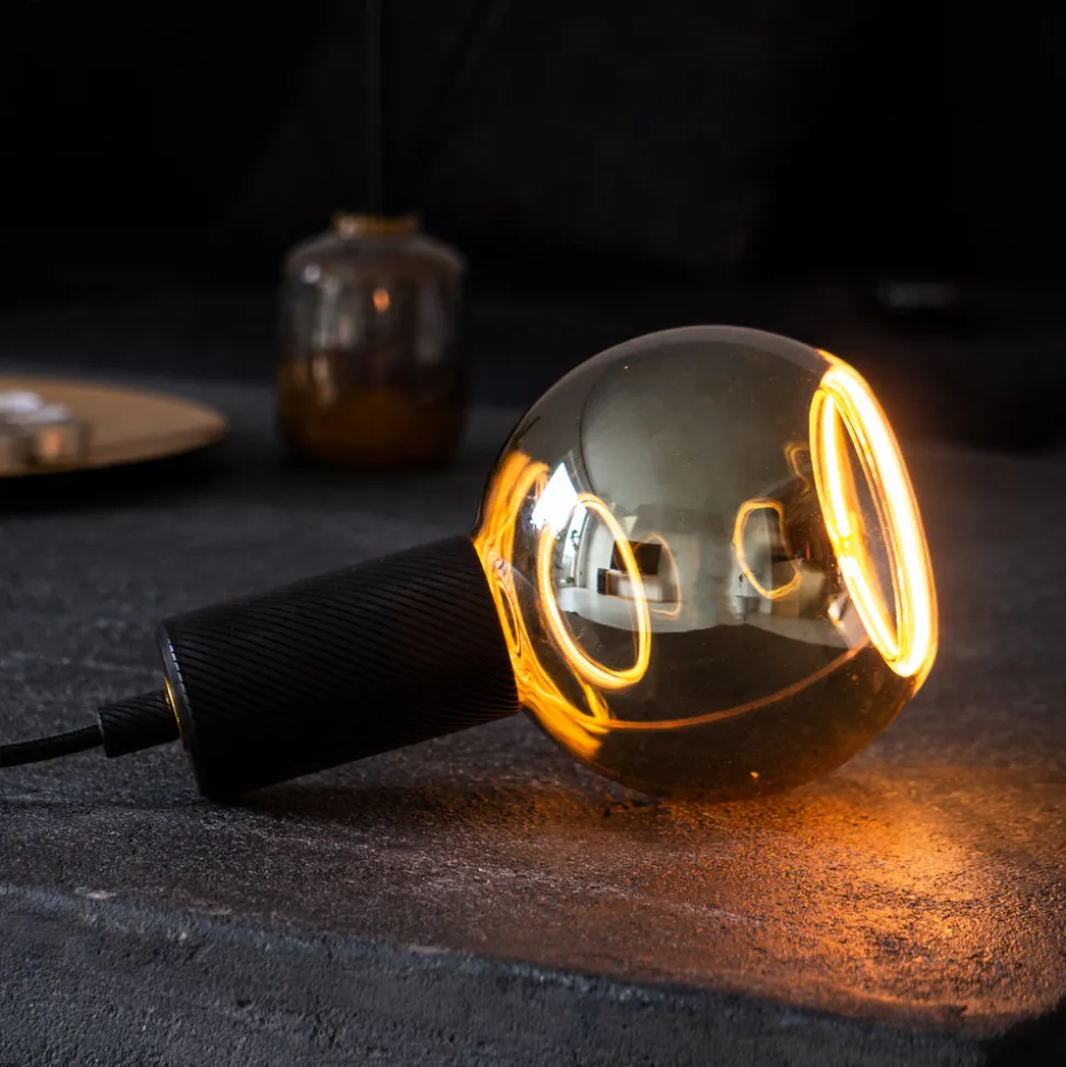 Med åpent glass – LED-glasslampe E27 6 W i røykgrått, ekstra varmhvit lysfarge Floating-serien fra SEGULA er utstyrt med et dobbeltvegget glass med røykgrått fargetone og en patentert myk LED-glødetråd som er bygget inn i glasset som en ring. Dette skaper et inntrykk av svevende lys. Glasset på pæren er åpent i toppen, noe som skaper tiltalende lyseffekter. E27-glasslampen er utstyrt med en spesielt varmhvit lysfarge i området 1 900 Kelvin og gir dermed et behagelig lys – dimbar med de fleste vanlige dimmere – svært god koblingsmotstand (100 000 koblingssykluser) – tildelt Plus X Award 2022/2023 i kategoriene innovasjon, høy kvalitet og design