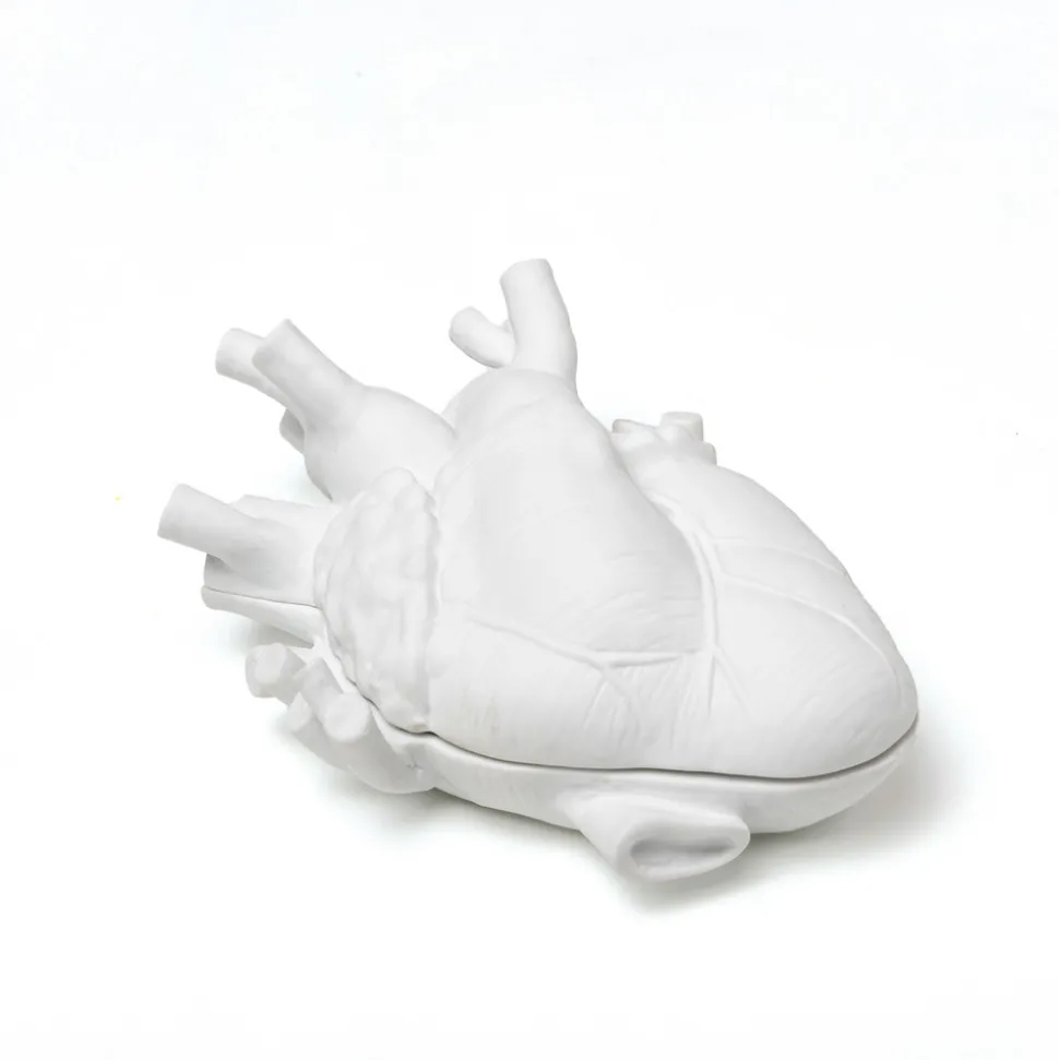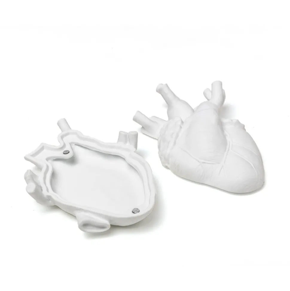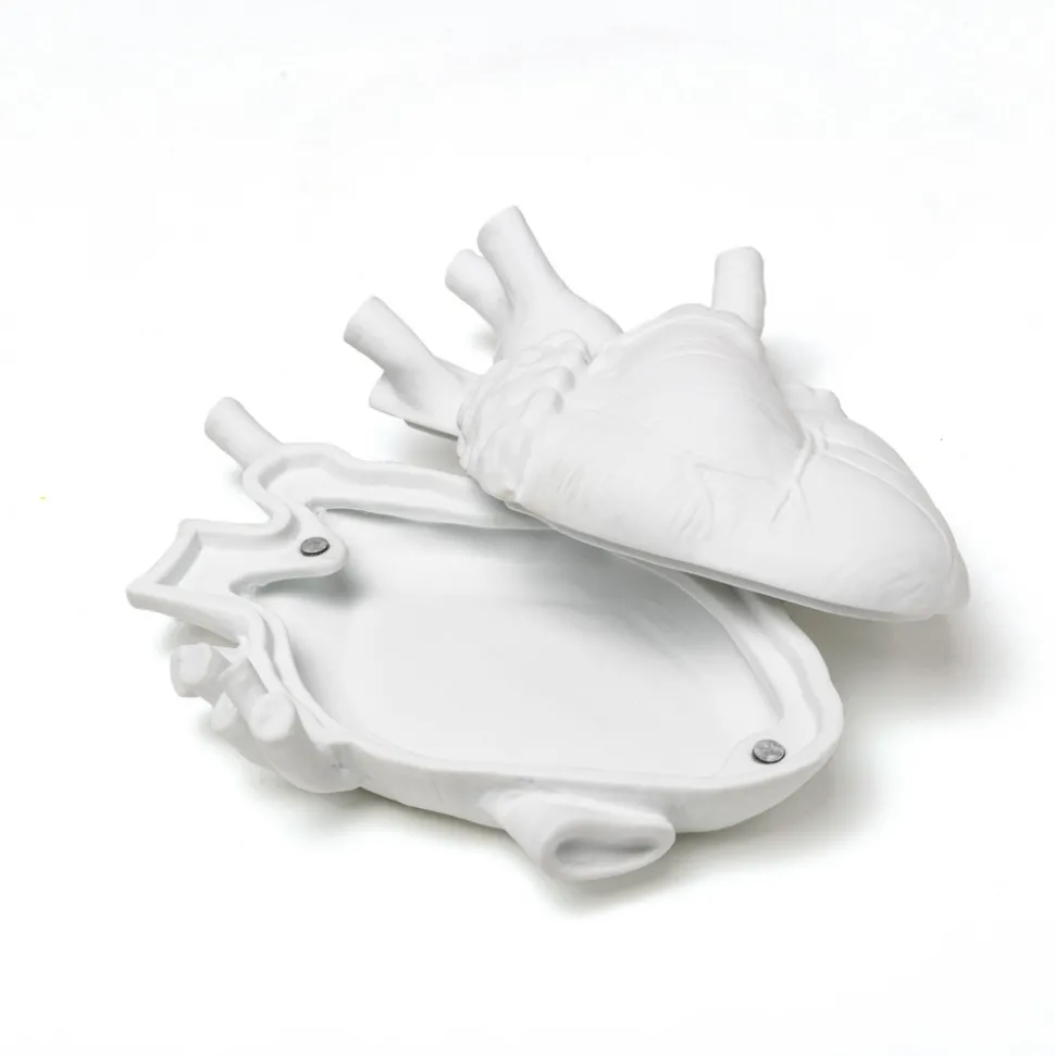 Love in Bloom-smykkeeske Love in a box fra SELETTI Love in a box er et hjerteformet smykkeskrin dekorert med rød fløyel som ser ut som om det har sprunget ut av et anatomisk tilbehør. Den kommer fra Love in Bloom-serien fra den italienske produsenten SELETTI, som er kjent for sine ekstravagante designsmykker. Å legge noe i hjertet er en enkel og romantisk idé. En overraskelse til noen som er viktig? Eller kanskje denne esken er til oss selv? Den skal inneholde en liten gjenstand av stor verdi, noe vi ønsker å ha på rett sted.