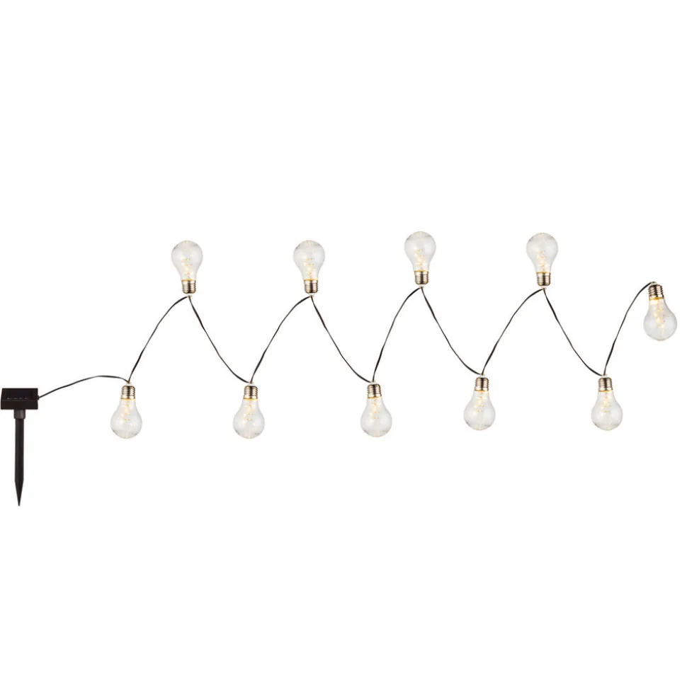 33708-10 er en 3,8 m lang solcelledrevet LED-lyslenke som er utstyrt med 10 lamper formet som glødepærer. Hver lampe er utstyrt med LED-lys. Disse kan settes på blinkeeffekt eller konstantbelysning. Dermed kan du skape en spesiell atmosfære.
