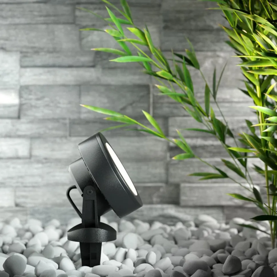 Spot med jordspyd Tommy er en effektiv og allsidig lyskilde, for gangfelt på eiendommen. Det justerbare lampehodet er utstyrt med en LED-pære med en fargetemperatur på 3 000 K, 4 000 K eller 6 500 K. Lyset sendes ut av en frostspreder av polykarbonat som i kombinasjon med den svarte boligen av støpeharpiks og silikonforseglinger gir en holdbar lampe.