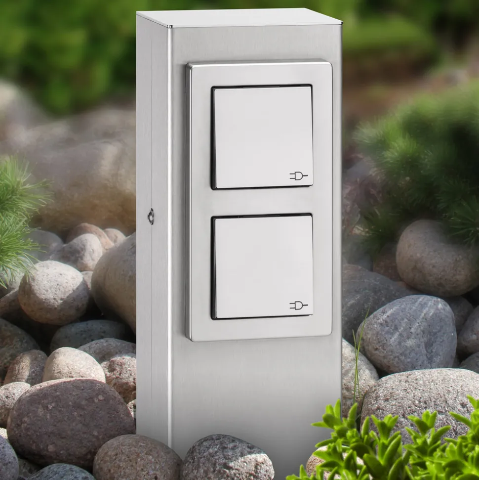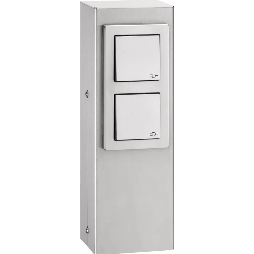 Denne praktiske stikkontaktsøylen er produsert i høykvalitets stål. Oppfellbare avdekkingsplater beskytter stikkontaktene mot alle slags værpåvirkninger. I tillegg har søylen en innvendig fot for festing i gulvet og er kablet til den innvendige koblingsboksen.