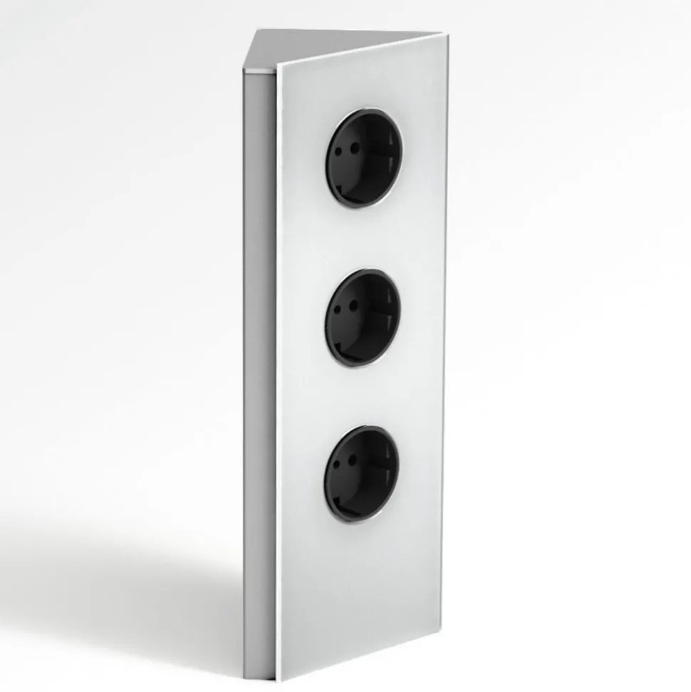 Denne 3-gangs stikkontaktlisten i børstet stål gir deg nok strøm overalt i stuen, enten det er på kjøkkenet, i stuen eller i gangen. Den elegante trekantformen gjør at den passer spesielt godt i hjørner, enten den står på høykant eller på tvers. Fronten er kledd med en hvit glassplate og ser spesielt elegant ut.