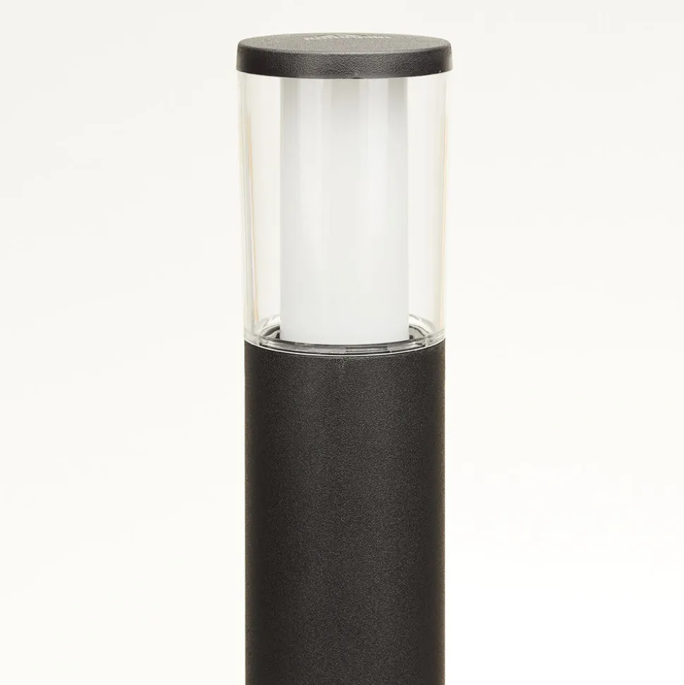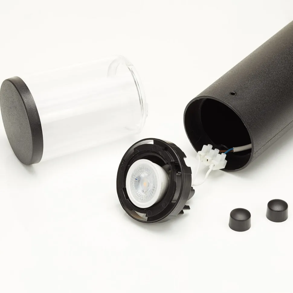 Veilampen Carlo er en pålitelig lyskilde som også kan tilpasses etter behov. Den utskiftbare GU10 LED-pæren har en varmhvit fargetemperatur på 2 700 K eller universalhvit 4 000 K, som kan velges direkte på lyspæren via en liten bryter. Den høye, sylindriske lampekroppen av svart støpeharpiks er utstyrt med et klart deksel. Et indre lag sikrer et jevnt spredt lys.