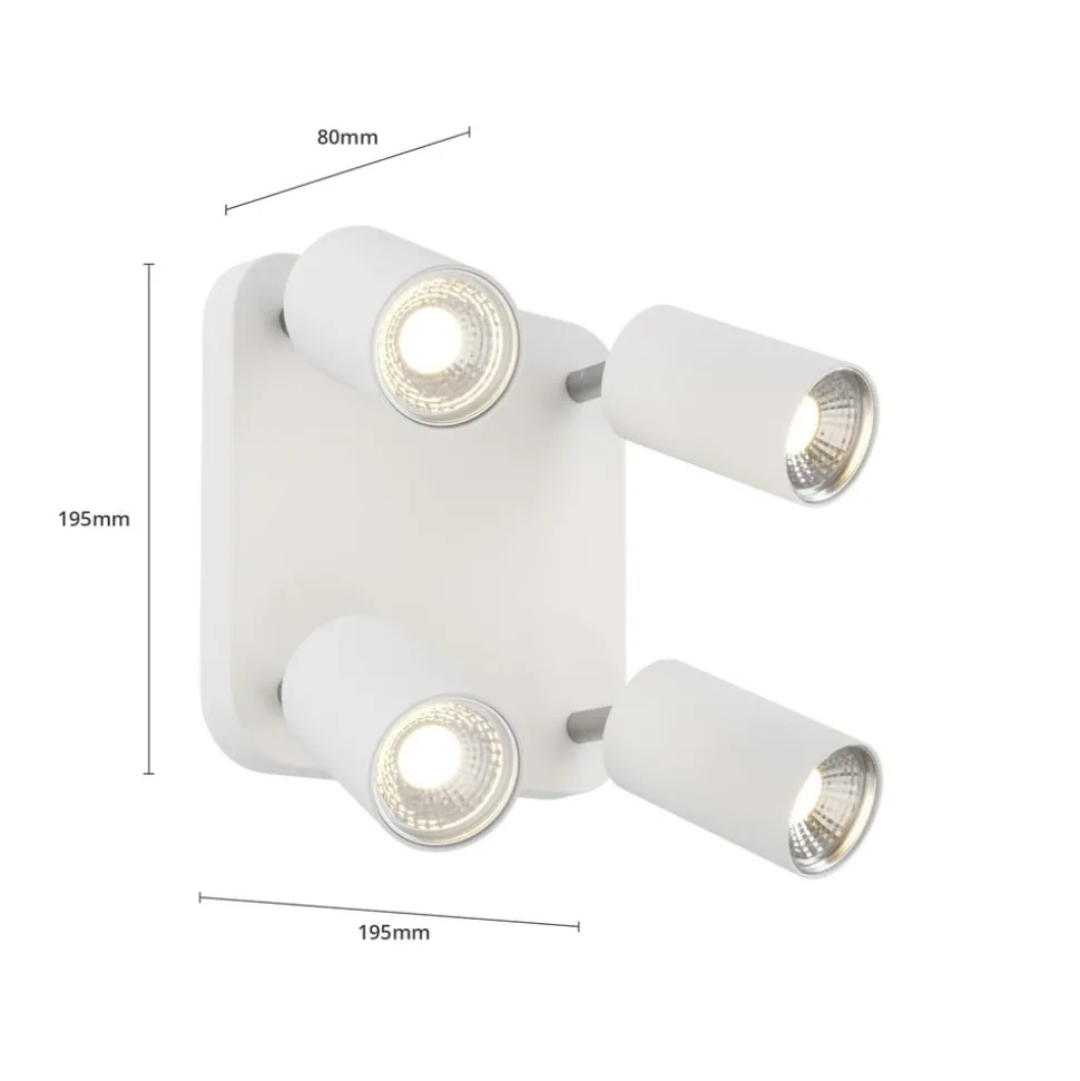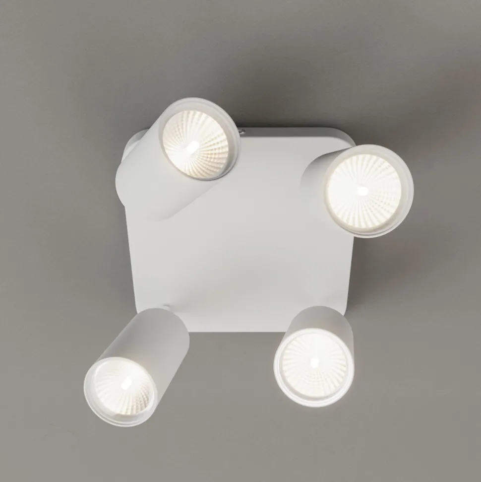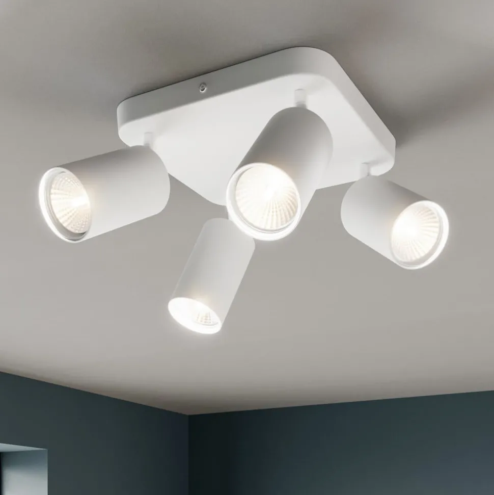 Taklampen Eye Spot med 4 lyskilder i hvitt kombinerer moderne design med funksjonell fleksibilitet. Denne lampen er laget av høykvalitets metall og passer perfekt inn i ulike interiørstiler, og er en stilig belysningsløsning for stuer, ganger, soverom og spisestuer. Den klare, geometriske formen og den diskrete fargen understreker den tidløse elegansen til dette belysningselementet.