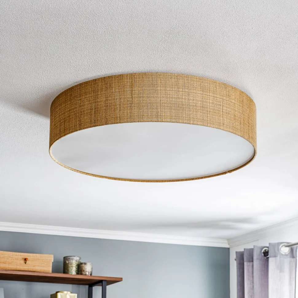 Taklampen Turda imponerer med sitt moderne design og den harmoniske kombinasjonen av tekstil, papir, PVC og stål. Den gyldne og hvite fargen gir ethvert rom et elegant preg, mens den generøse størrelsen på 65 cm i diameter sørger for jevn lysfordeling. Denne lampen er ideell for stuer, soverom, ganger og spisestuer og passer perfekt inn i forskjellige interiørstiler.