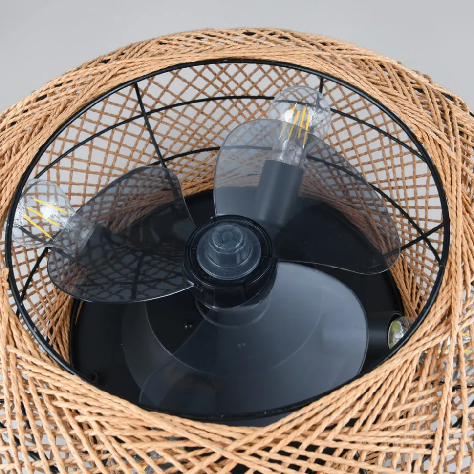 Vifte-lampen Lillesand har ikke bare mange funksjoner, men gir også ethvert rom et naturlig preg takket være skjermdesignet i metall med flettede papirstrenger. Inkl. fjernkontroll med batterier.