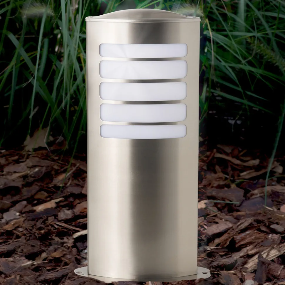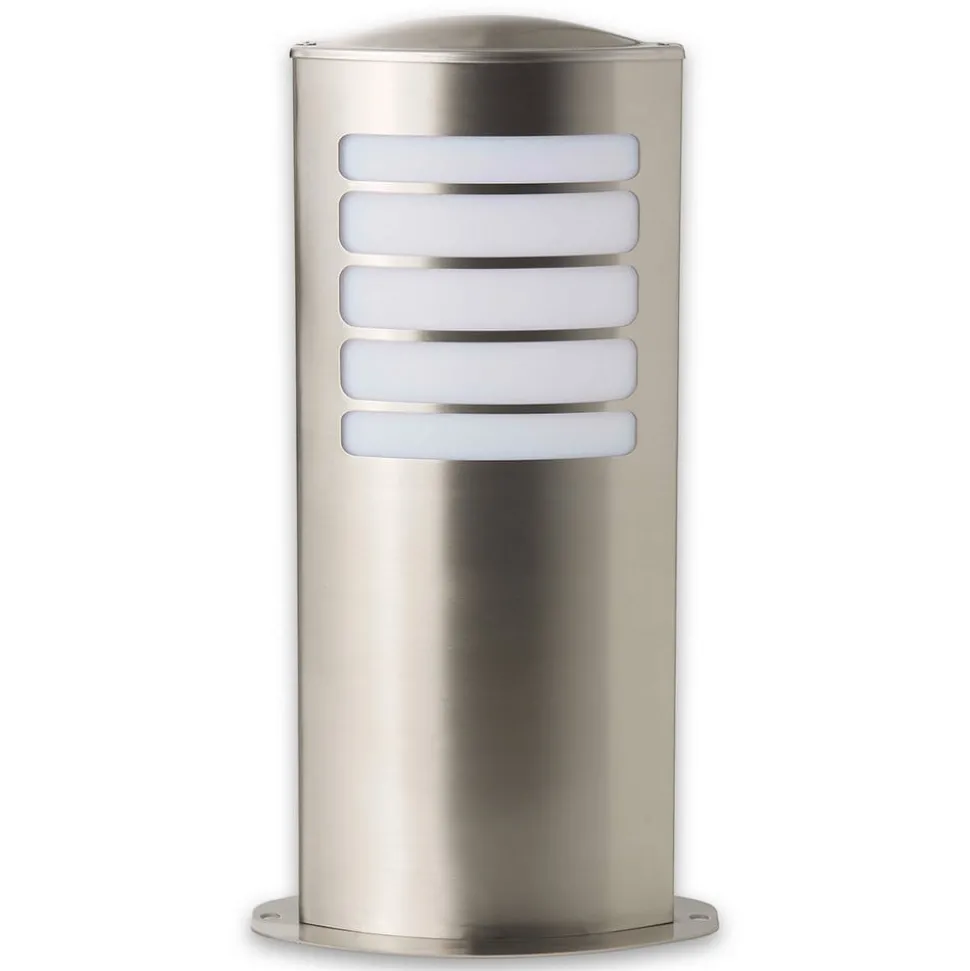 Sokkellampen Todd i oval form, som er laget av høykvalitets stål, gir et moderne og elegant inntrykk. Bak stålstengene er den utstyrt med en hvit diffusor i plast, som gir blendingsfri belysning. Som pærer kan sparepærer på opptil 20 W brukes i E27-fatningen. Den 40 cm høye sokkellampen Todd tåler all slags vær med kapslingsgrad IP44 og belyser ikke bare stier og terrasser på private tomter, men kan også monteres som energibesparende lyskilde i uteanlegg ved hoteller, restauranter, klinikker osv.