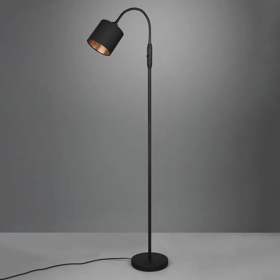 Tommy gulvlampe, svart/gull, høyde 130 cm, metall/stoff
