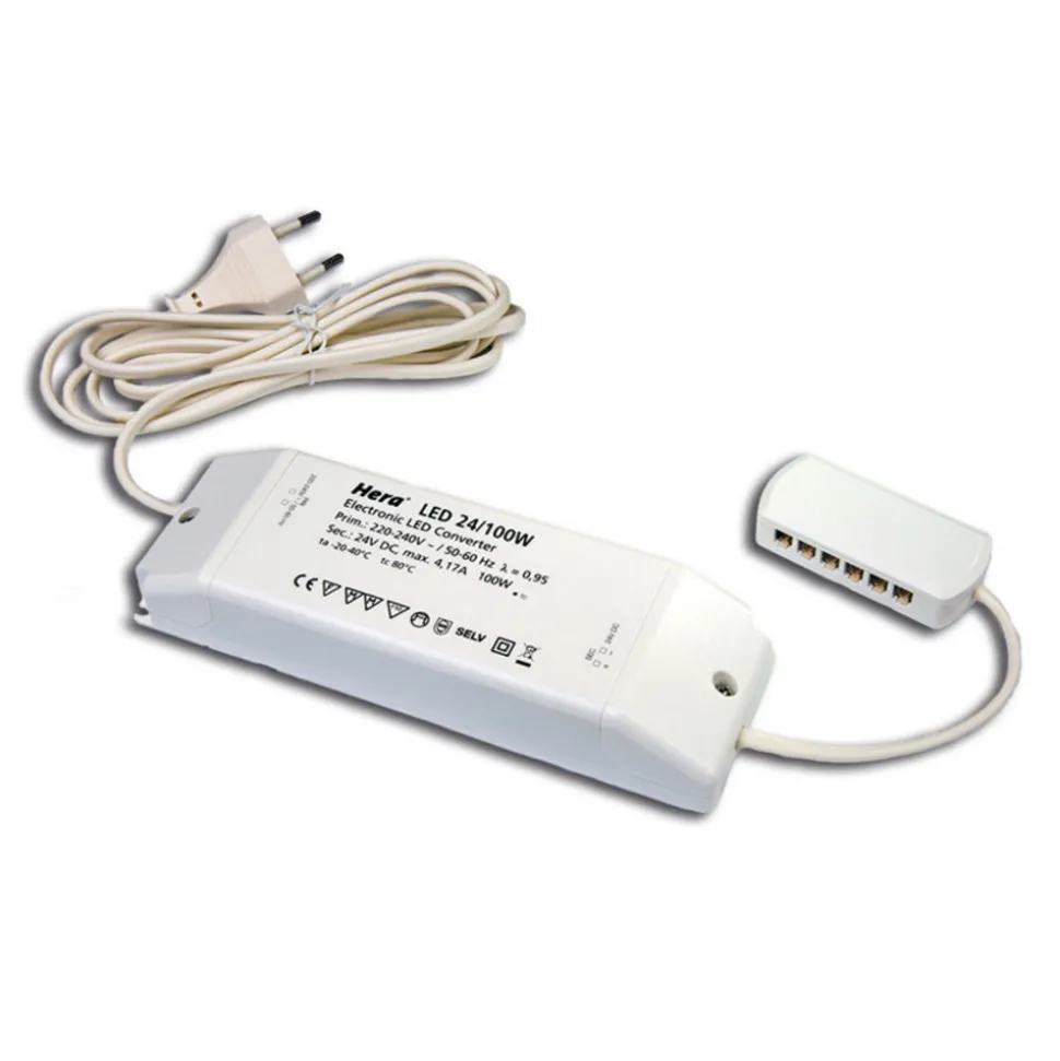 Denne transformatoren er egnet for forsyning av enheter med 24V inngangsspenning som er utstyrt med Hera LED 24 -plugger. Transformatoren har en plugg for tilkobling til stikkontakt.