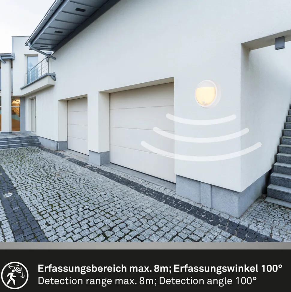 Utendørs LED-vegglampe 3785016 hvit bevegelsessensor Ø 17 cm