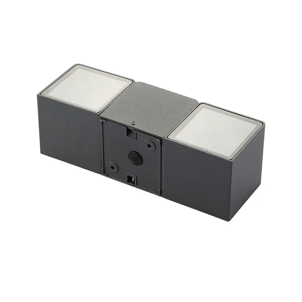 Utevegglyset har kapslingsgrad IP54 og ser enkelt og rettlinjet ut når det er av, men utfolder seg i sin fulle prakt når lyset slås på. Da ser man et lysbilde med flere kjegler på veggen, to stråler oppover og to nedover. LED-teknikken garanterer lavt strømforbruk og overflaten til aluminiumshuset er holdt i den tidløse fargen mørk grå. Den kan særlig anbefales til moderne hus.