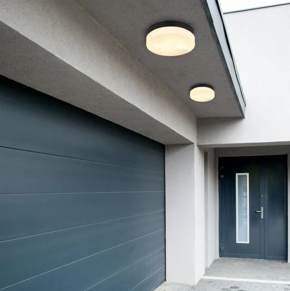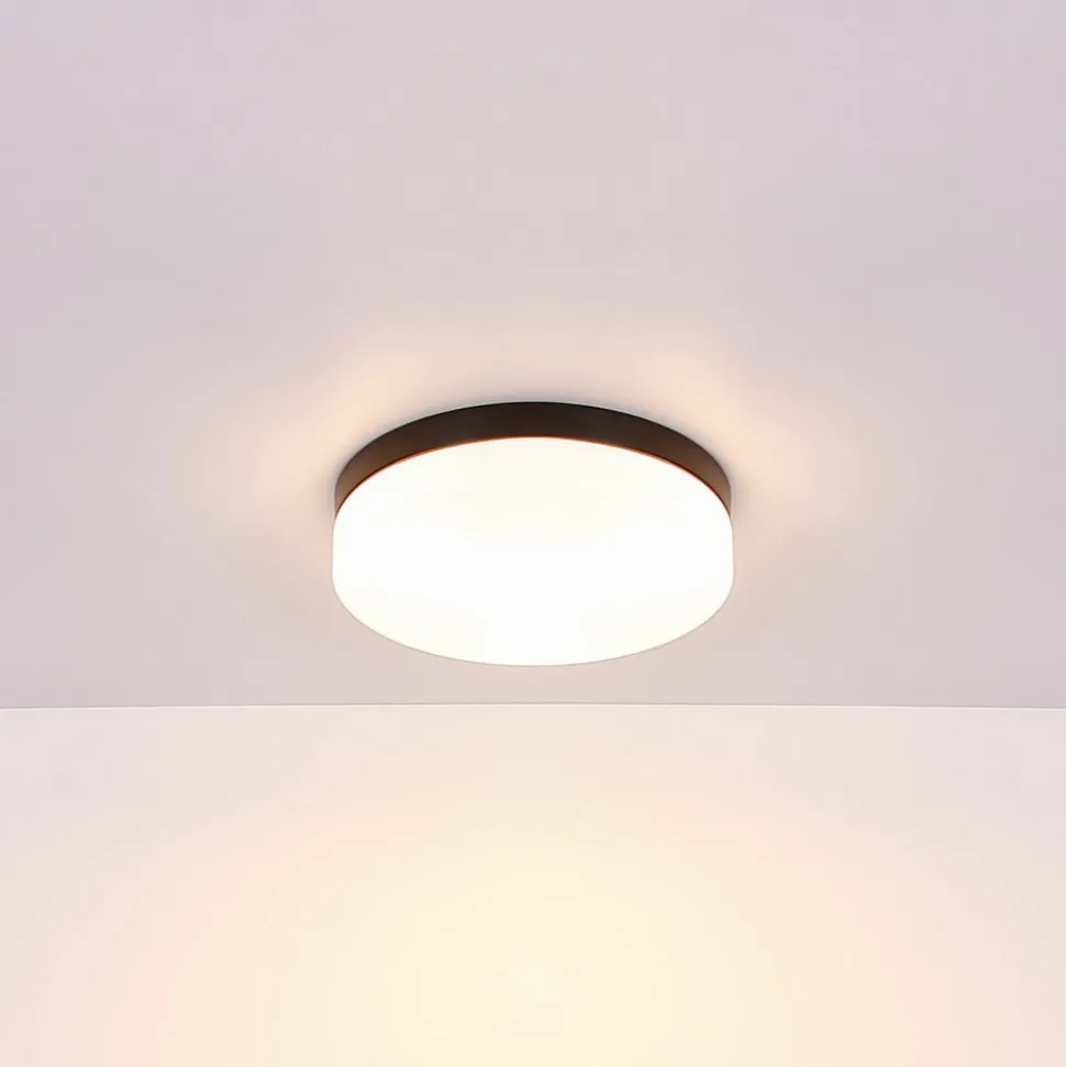 Utendørs taklampe Vranos, matt sort, Ø 24 cm, aluminium