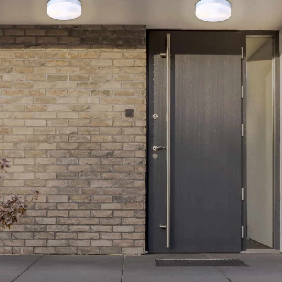Utendørs taklampe Vranos, sølvfarget, Ø 24 cm, aluminium