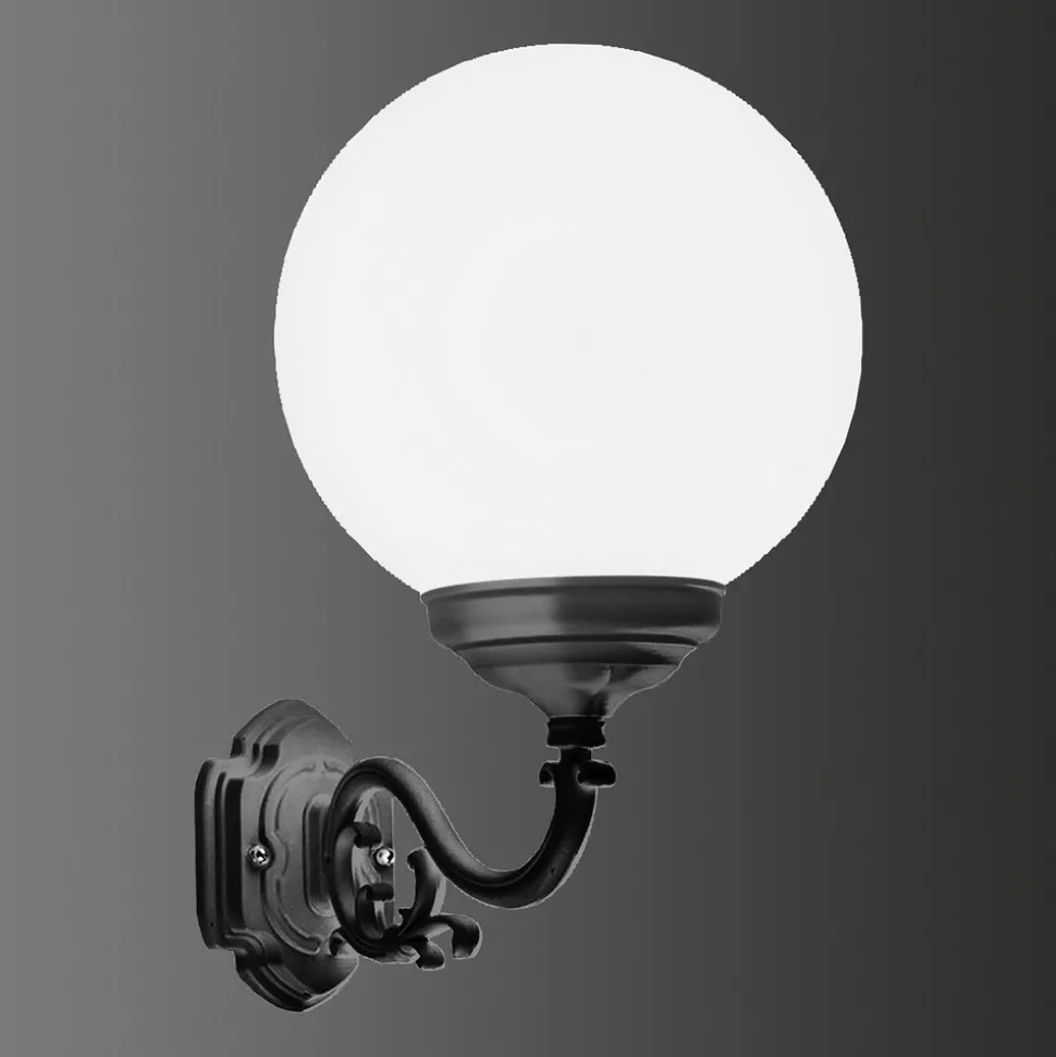 Utendørs vegglampe 1140, kuleskjerm, svart/hvitt