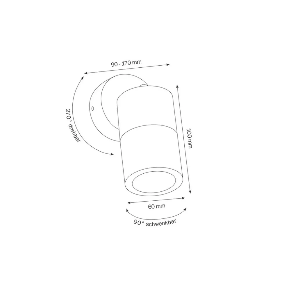 - spot – Ø 6 cm, lengde 10 cm; veggfeste – Ø 6,8 cm