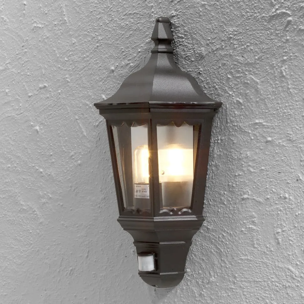Den nostalgiske vegglampen FIRENZE i aluminium med en praktisk sensor.