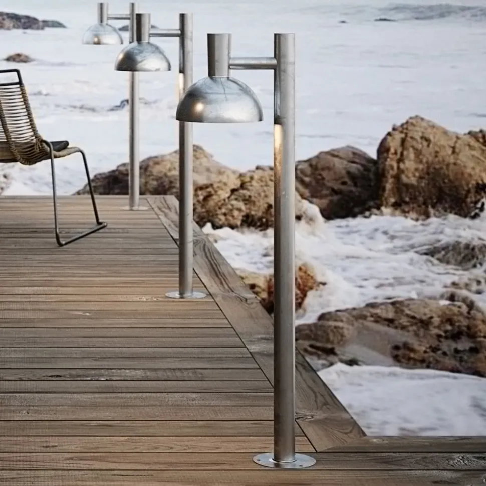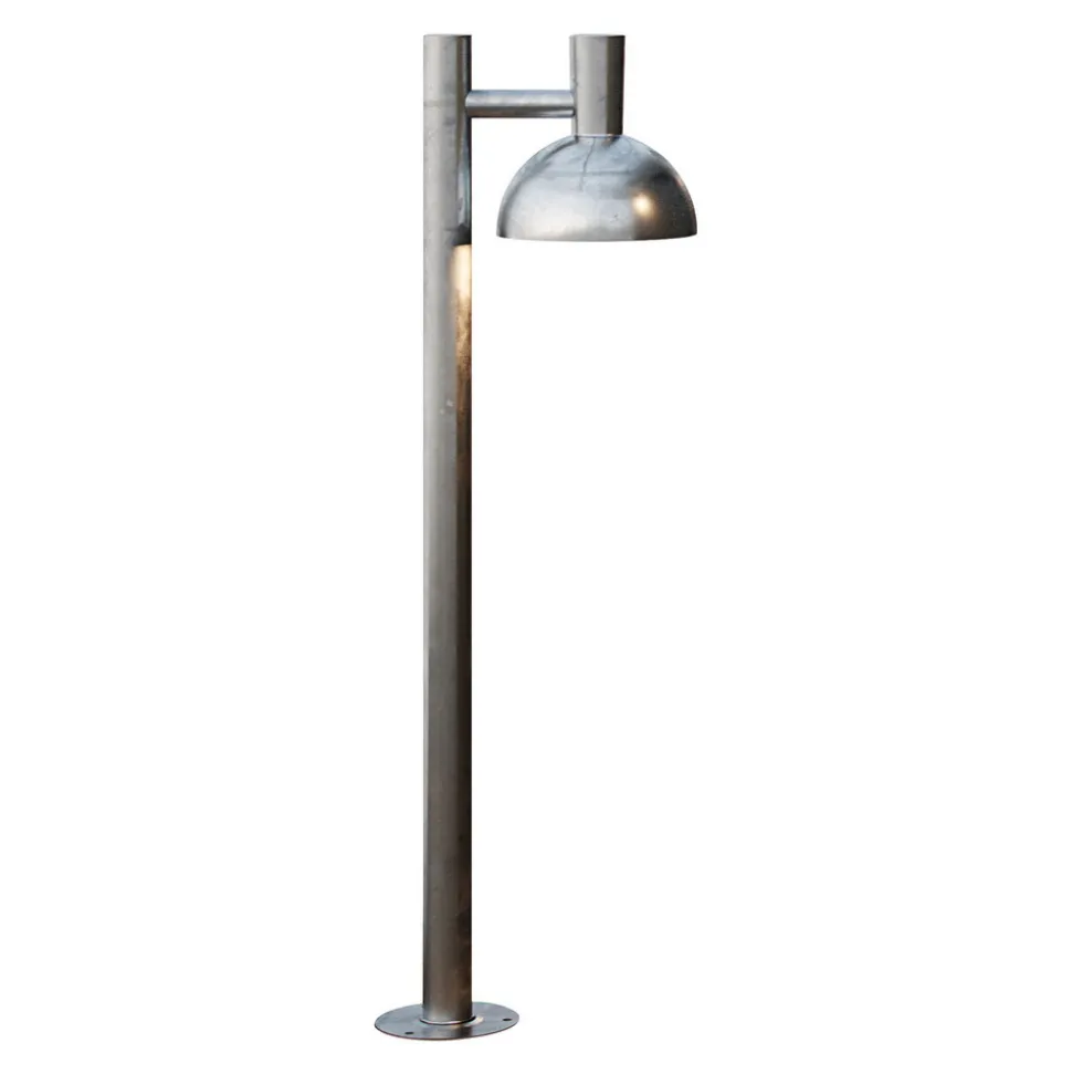 Arki 100 pullertlampe består av en solid stang med en sokkel og en skjerm som peker nedover. veilampe er utelukkende laget av galvanisert metall og kan festes nær saltvann, og takket være sprutbeskyttelsen tåler den vind og vær. For å gi nyttig og blendingfritt orienteringslys for innkjørsler eller terrasser, rettes lyset rett og slett inn på hagestien uten å blende. En passende lampe kan bestilles direkte fra tilbehøret og er beskyttet av en plastdiffusor. Designet kommer fra kunstneren Bønnelycke MDD fra Danmark.