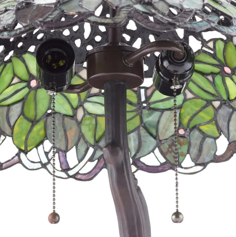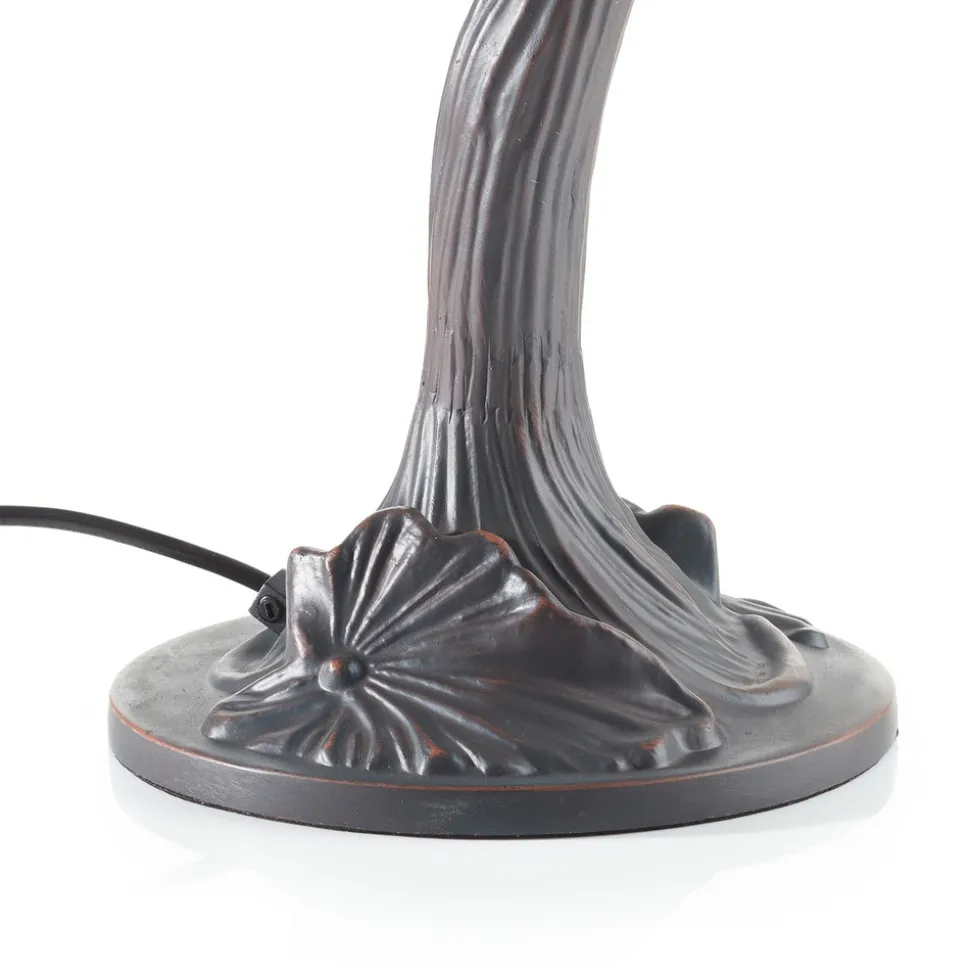 Jamaica-bordlampen sprer et snev av feriestemning! Bare slå av og la feriestemningen oppstå … det er ikke noe problem med Jamaica-bordlampen. Jamaica ser ut som et lite palmetre med sin snirklete base prydet med store blomster og den brede lampeskjermen designet med palmeblader. Slik kan du ta Karibia rett inn i hjemmet ditt. Lampeskjermen på Jamaica-bordlampen er unikt designet i Tiffany-stil og inspirerer med et spesielt varmt lys. Du vil virkelig føle at du er på ferie! Jamaica-bordlampen er utstyrt med to komfortable trekkbrytere for separat kobling av lampene.