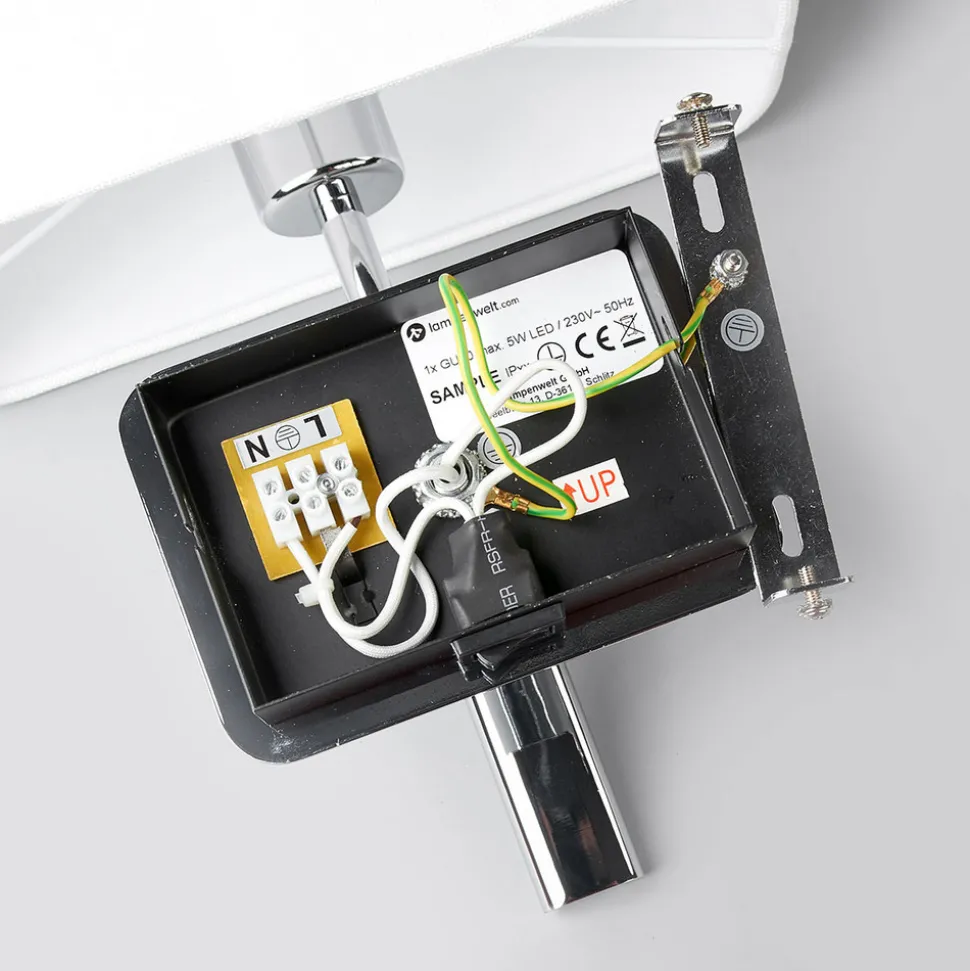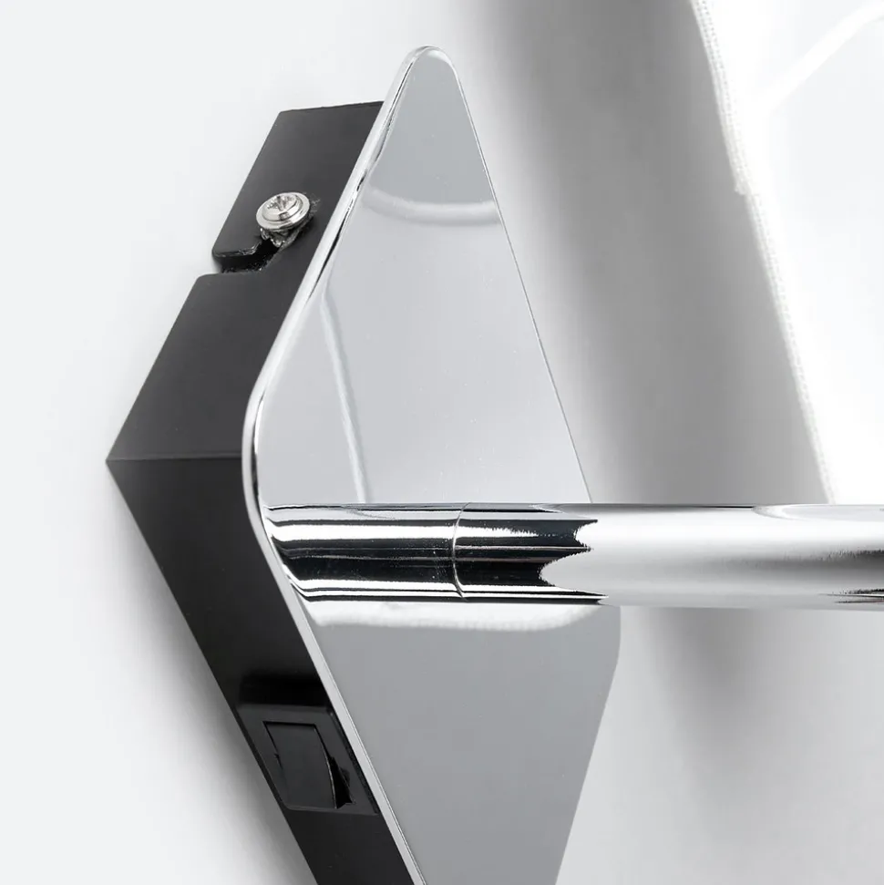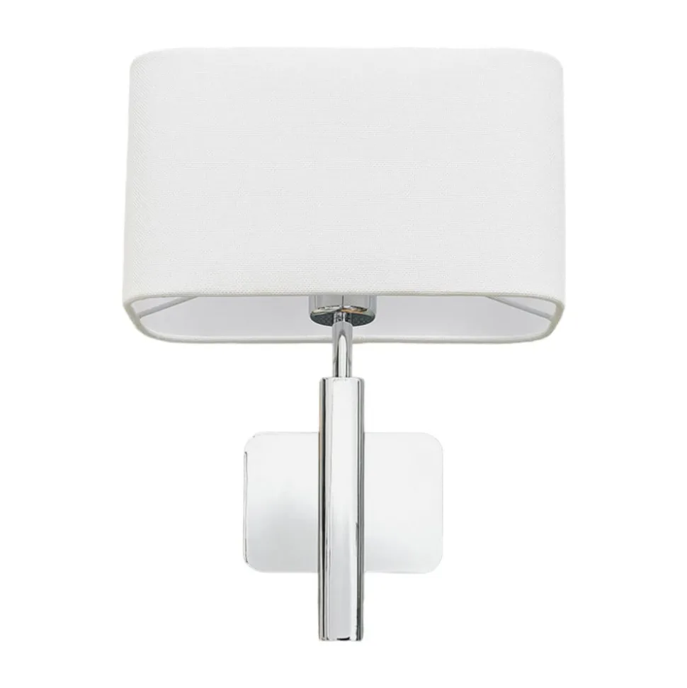 Firkantet vegglampe Jettka i tekstil med hvit skjerm og forkrommet stamme