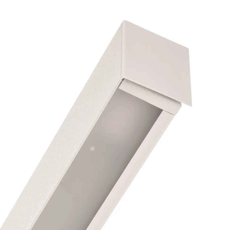 Vegglampe Straight L kombinerer moderne design med funksjonell belysning og er laget av høykvalitets stål og plast. Med sin klare, hvite farge passer den sømløst inn i ulike romkonsepter og er ideell for stuer, ganger og spisestuer. Den varmhvite lysfargen på 3000 Kelvin skaper en behagelig atmosfære som virker både avslappende og innbydende.