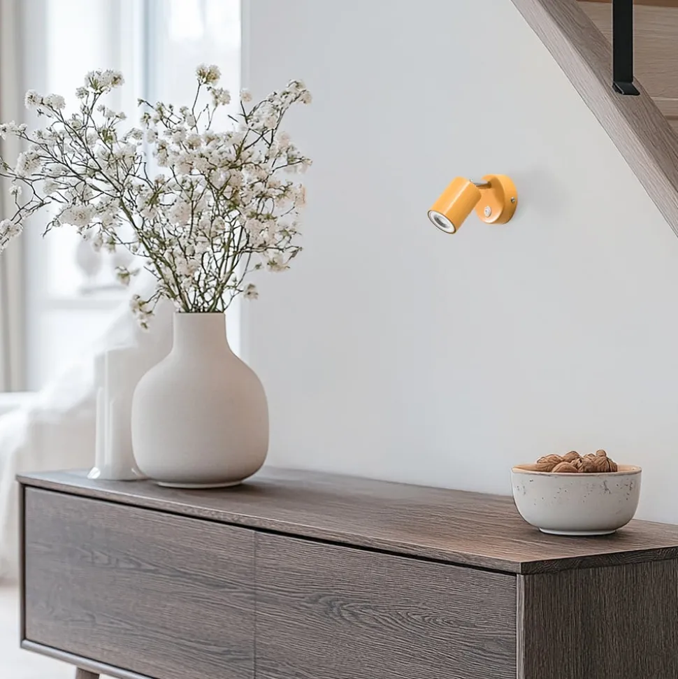 Veggspot Fun imponerer med sin moderne estetikk og den lysende gule fargen, som gir ethvert rom et friskt preg. Denne spotten er laget av høykvalitetsstål og tilbyr ikke bare lang levetid, men også et stilig tilskudd til stuen, spisestuen og soverommet. Den justerbare konstruksjonen gjør det mulig å rette lyset der du ønsker det, og dermed skape den ønskede atmosfæren.