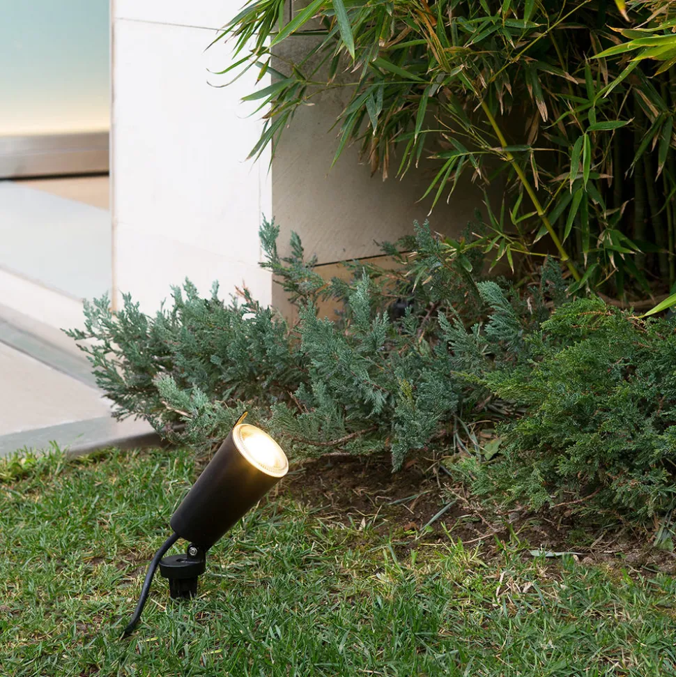 Denne kompakte spotten kan enten brukes som veggspot eller som hagelampe. Jordspydet som følger med i leveransen gjør at utelampen Toni står stødig uavhengig av forholdene i bakken. Takket være den ekstra høye IP65-beskyttelsen er modellen motstandsdyktig mot støv og skitt, men også mot gjennomtrengning av vannstråler. Denne robuste spotten tåler også saltvann. Designet er svært funksjonelt: veggspotten, som også er utstyrt med jordspyd, kan rettes i ønsket retning for individuell utforming av uterommet.