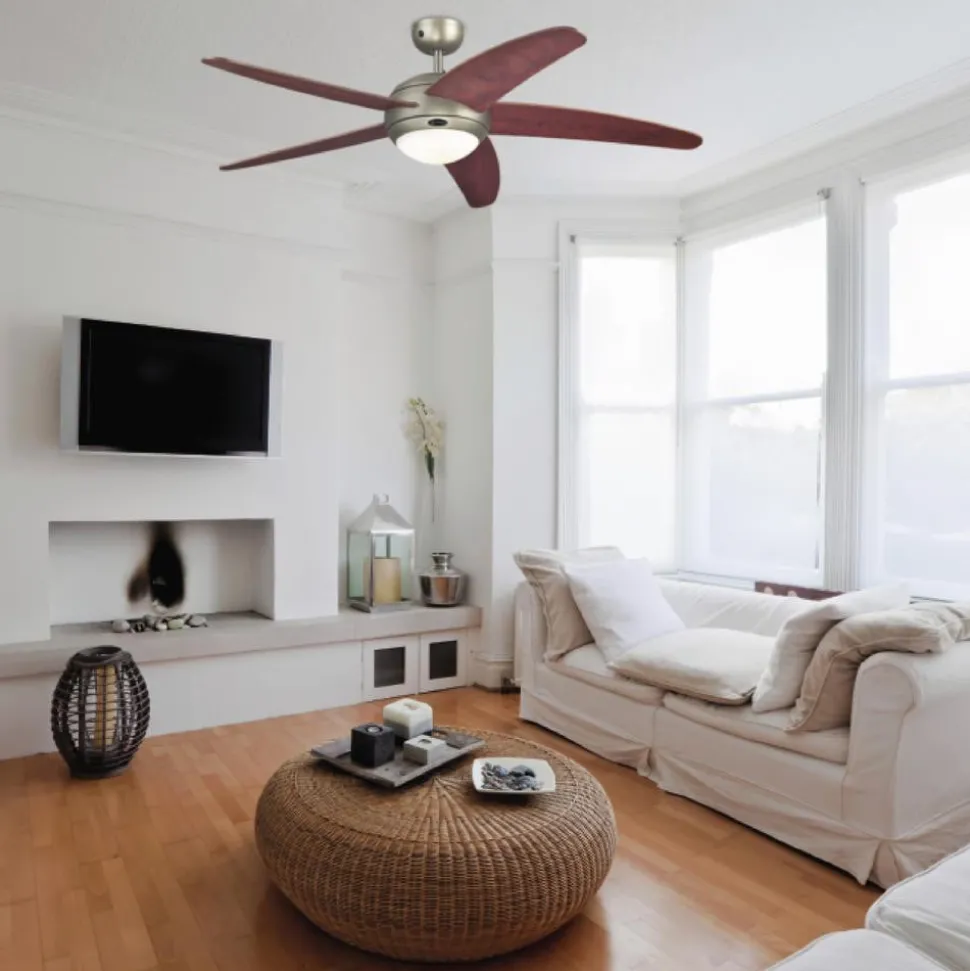 Fem avrundede vinger i fargen Dark Pewter pryder takviften Bendan. En lampe i opalglas sprer et mykt lys for en stemningsfull belysning. Totalt gir dette et harmonisk uttrykk som kan kombineres med mange innredningsstiler. Inkludert fjernkontroll og pærer. Alternativt kan styringen også skje via en veggbryter (ikke inkludert, kan bestilles som tilbehør).