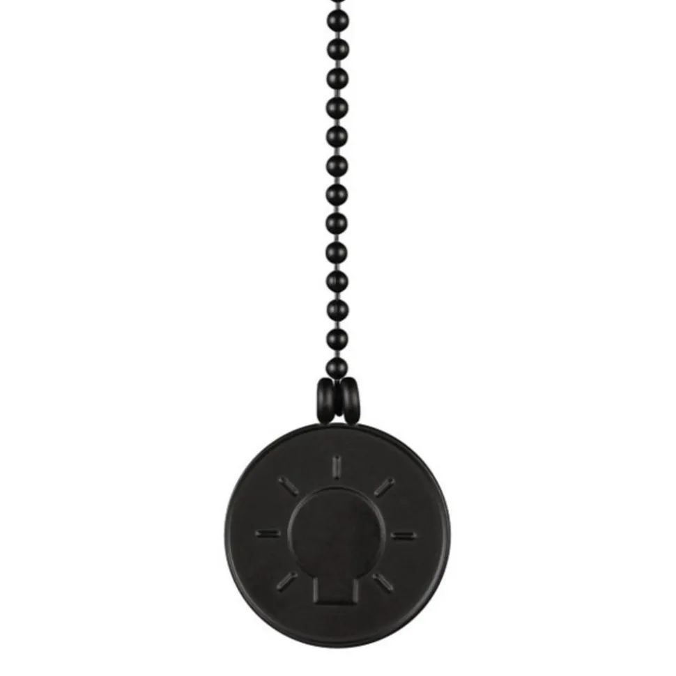 Den dekorative trekkjeden er utstyrt med en glødepæremedaljong i matt svart og har en 30,5 cm lang, falset kjede.