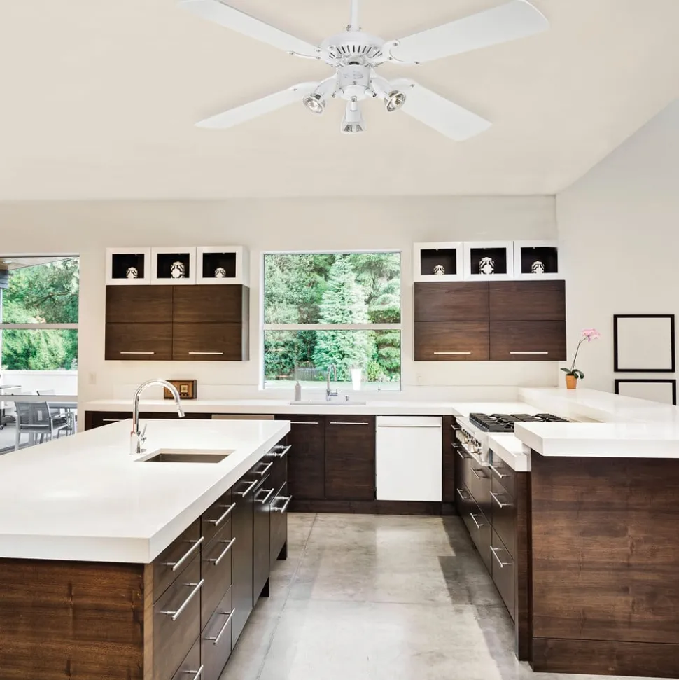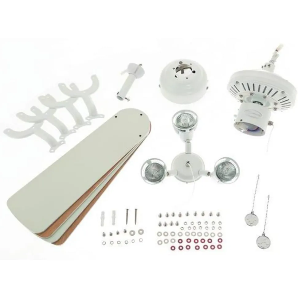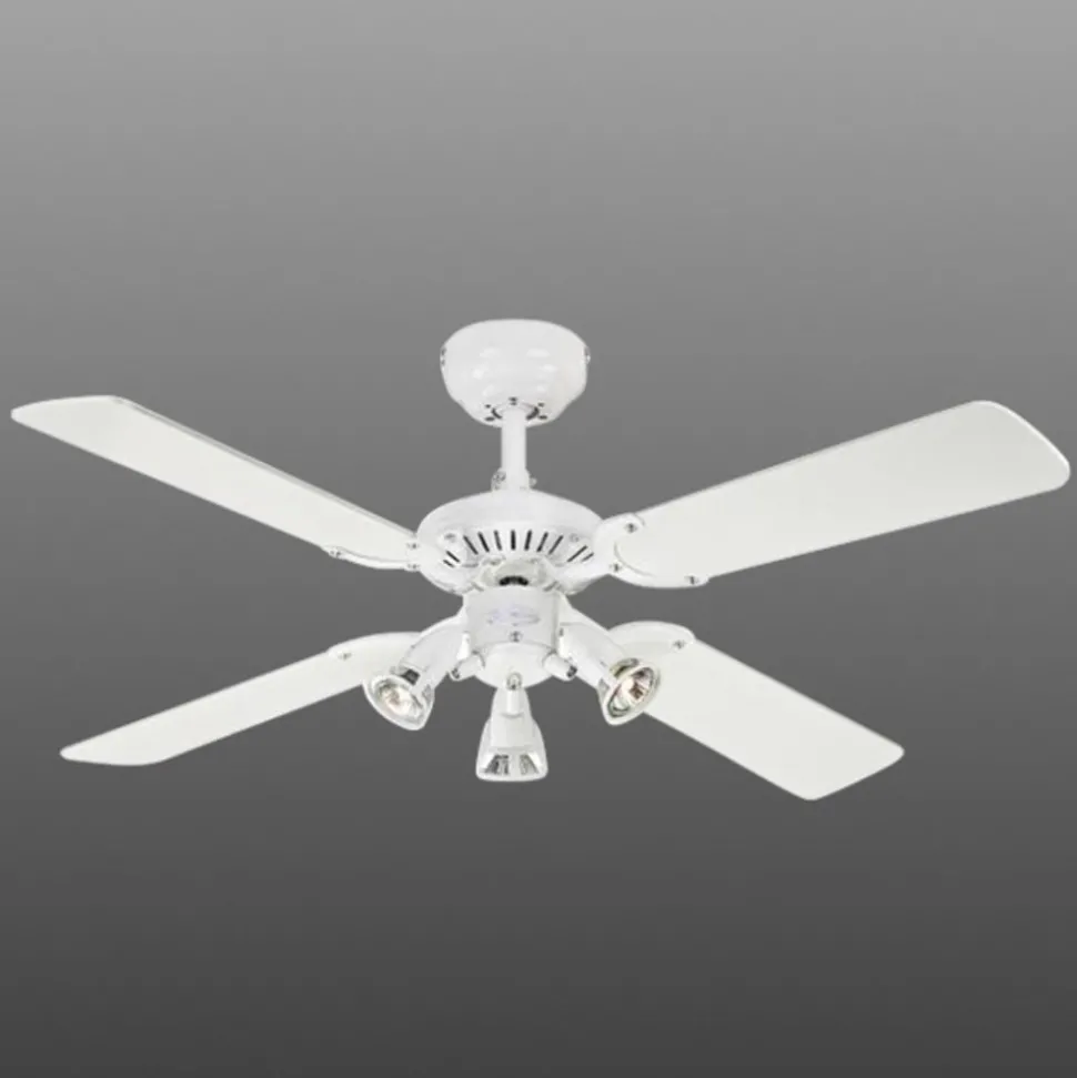 Den ene siden av rotorbladene på takventilatoren Princess Euro er hvit mens den andre siden er i lys bøk. Princess Eurosørger ikke bare for optimalt inneklima året rundt. Den sørger i tillegg for takbelysning. Tre spotter er inkludert .Disse benytter halogenpærer maksimalt 50 W med GU10-sokkel. Lyskildene er ikke inkludert i leveringen. De kan, i likhet med fjernkontrollen, bestilles i tilbehørslisten.