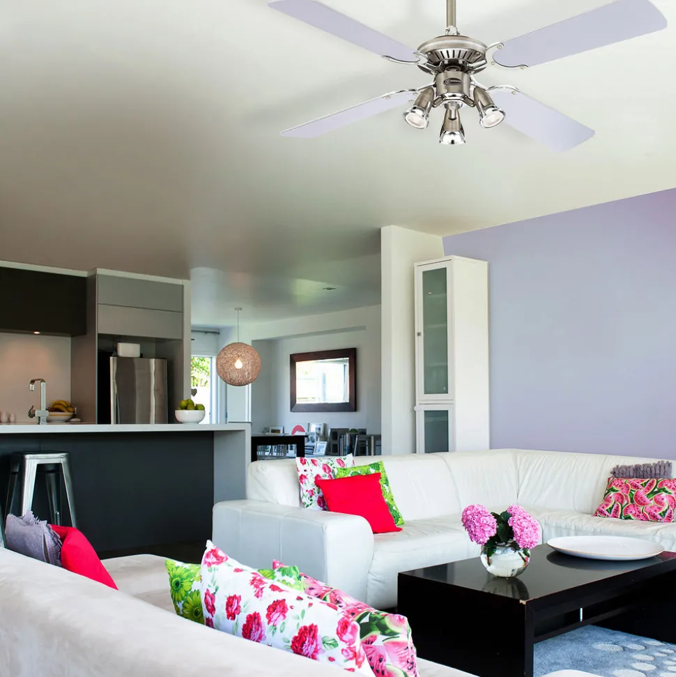 Takviften Princess Euro med vendbare vifteblad i sølv og grafitt virker utrolig elegant. Den er svært effektfull og er dessuten utstyrt med en spot med 3 lyskilder.