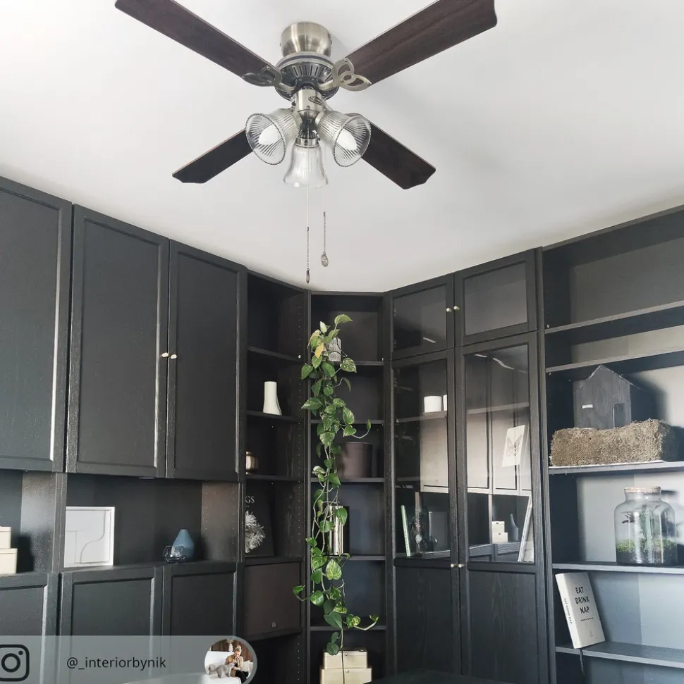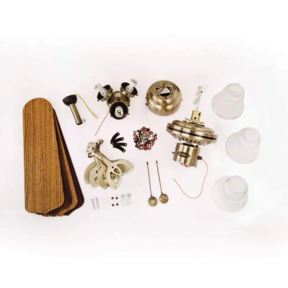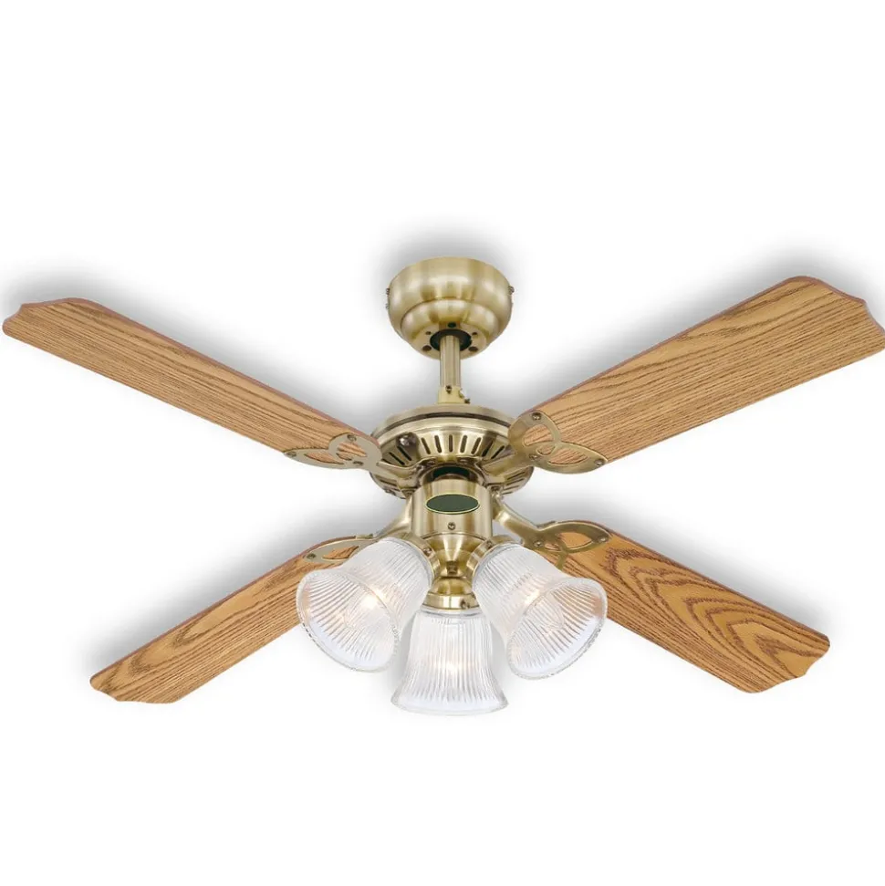 takvifte Princess Trio laget av stål og plast tilbyr optisk og funksjonell kvalitet. Det er tre lys i elegant opalglass på viftehuset med sin antikke messingfinish. De er designet for pærer med E14 fatning .
