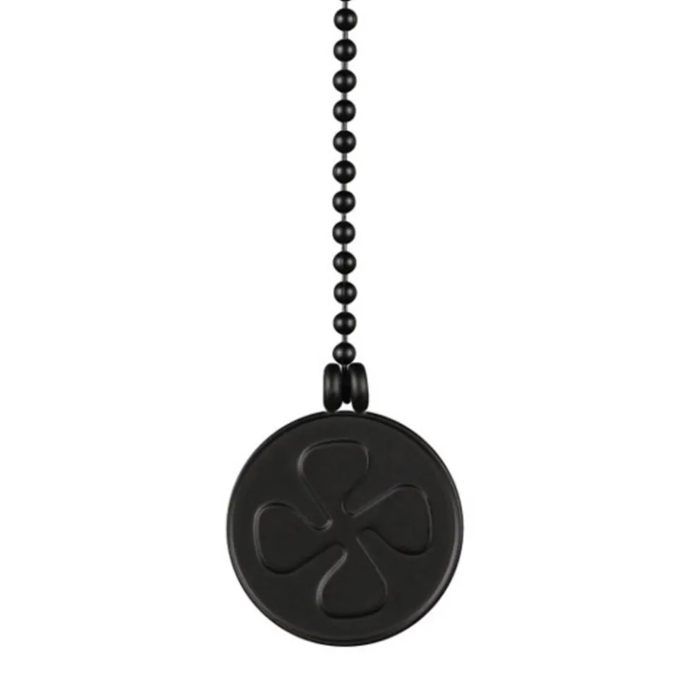 Den dekorative trekkjeden er utstyrt med en viftemedaljong i oljet bronse og har en 30,5 cm lang, falset kjede.
