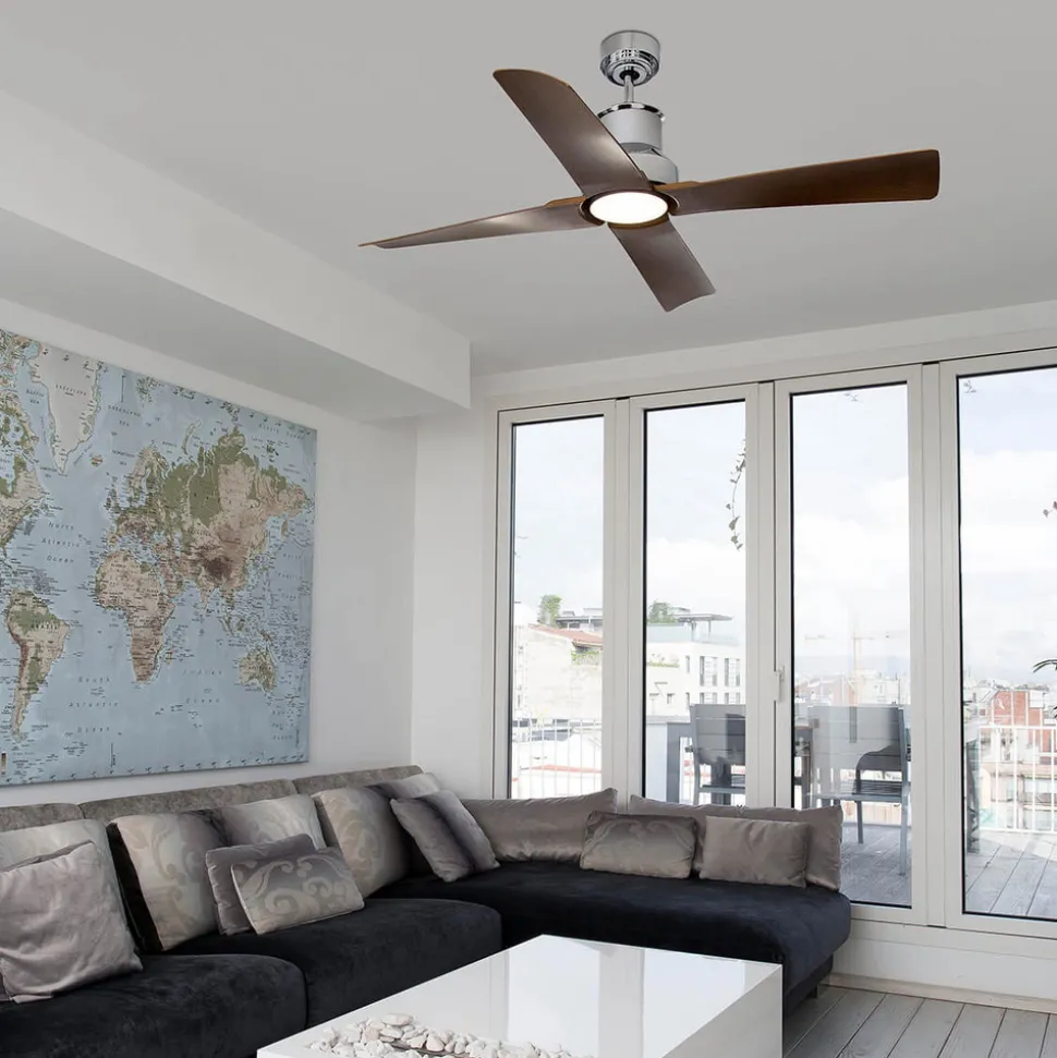 Komfortabelt utstyrt Winche takvifte Det forkrommede huset på Winche takvifte står i slående kontrast til plastbladene i mørkt treutseende. Takviften Winche, som er egnet for rom på opptil 25 m², kan også suppleres med et lyskit ved behov (medfølger ikke, fås som tilbehør). Funksjoner Takviften Winche er utstyrt med forover- og bakoverstrømning og kan brukes året rundt – om sommeren for kjøling og om vinteren for jevn fordeling av romluften.