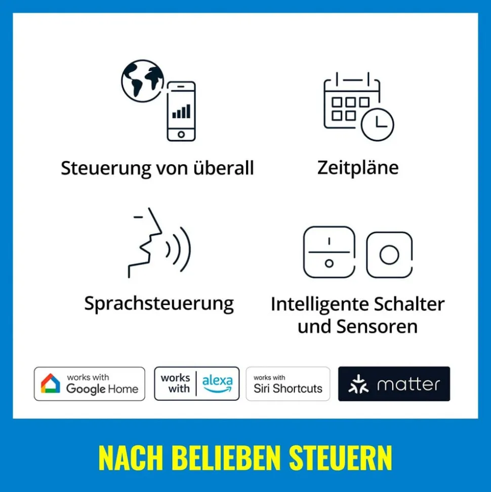 - Apple Home, Matter, Amazon Alexa, Google Assistent